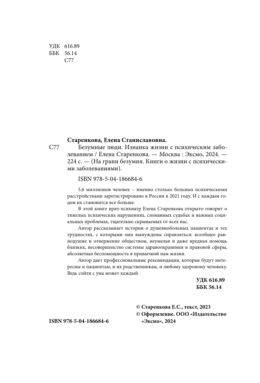 Безумные люди. Изнанка жизни с психическим заболеванием (Старенкова Елена Станиславовна); ООО "Издательство "Эксмо", 2024