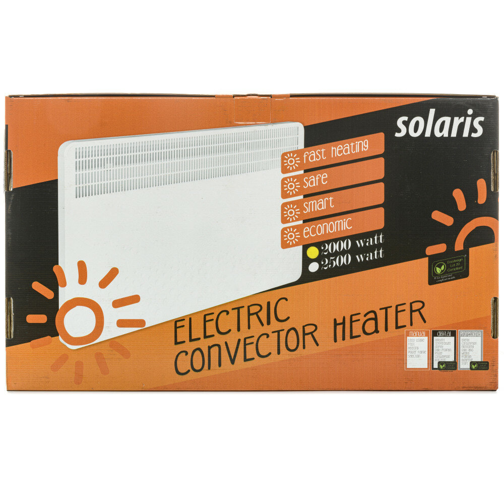 Solaris (Соларис) - электрический конвектор для обогрева помещения, площадь которого не превышает 20 квадратных метров. Встроенное электронное управление значительно упрощает процесс настройки и делает его более гибким под индивидуальные условия. В комплекте поставляются ножки для быстрого размещения устройства на полу.