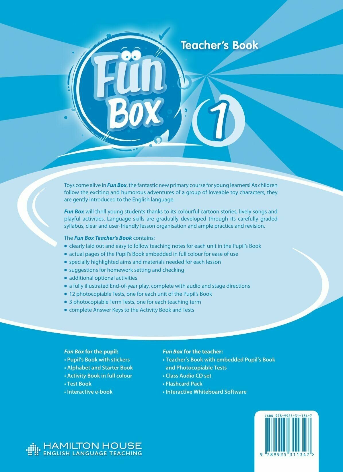 Книга на английском языке. Fun Box 1 Teacher's book / Книга для учителя к учебнику английского языка Fun Box 1 ( Уровень Pre-A1).Каждый разворот книги для учителя соответствует одному уроку в Pupil’s Book и включает уменьшенную цветную копию разворота учебника.Книга для учителя содержит:-Подробные пошаговые планы каждого урока и рекомендации для всех заданий УМК;-Описания игр для работы в классе;-Рекомендации по работе с рабочей тетрадью, домашнему заданию;-Тесты к каждому блоку и 3 промежуточных теста;-Пьесу для постановки.