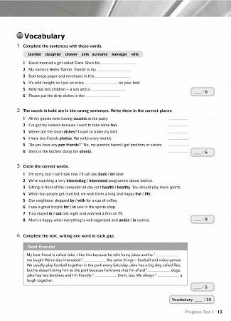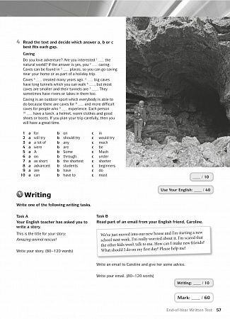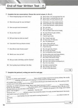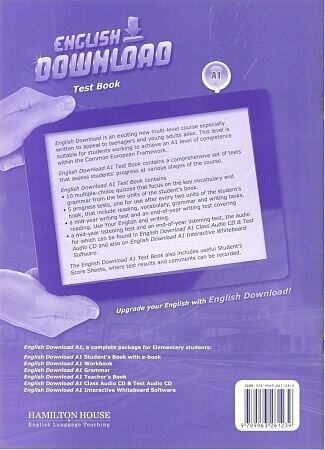Книга на английском языке. Буклет с тестами (Test Book) к учебнику английского языка English Download, уровень A1.Содержит:• 10 тестов (quizzes) с лексико-грамматическими заданиями к каждому из 10 тематических блоков (units) учебника;• 5 тестов (progress tests) - c разделами Reading, Vocabulary, Grammar, Writing для промежуточного контроля знаний (1 тест на 2 блока);• 1 тест -в середине учебного года (после прохождения 4 блоков) c разделами Reading, Use Your English, Writing, Listening;• 1 тест - финальный контроль в конце учебного года c разделами Reading, Use Your English, Writing, Listening. Все задания имеют удобно оформленную готовую схему подсчета результатов, и отдельно ведомость с итоговыми оценками по всем тестам . Ключи к тестам даны в книге для учителя (Teacher's Book) либо в учительском экземпляре буклета с тестами с впечатанными ответами (Test Book (overprinted)