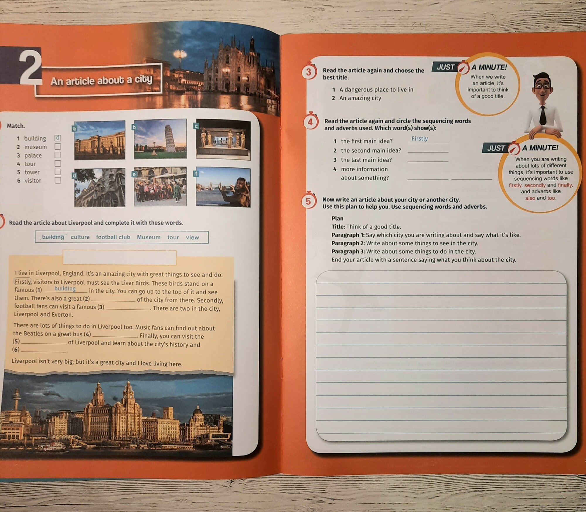 Книга на английском языке.Just Write 2 уровень A1 - A2.Just Write - 3-х уровневое пособие для формирования и развития умений в коммуникативном письме издательства Hamilton House.Пособие предназначено для учащихся возрастной группы 10 - 13 лет (4-5 класс - 8-9 класс основной школы).Пособие может быть использовано:- как дополнительный материал к любому учебнику, соответствующего уровня, для повышения уровня сформированности умений в письме.- В качестве пособия для внеурочной деятельности учащихся.- В качестве пособия для проведения факультативных занятий.Каждый уровень пособия содержит 15 2-страничных уроков, каждый из которых посвящен определенному жанру письменного высказывания.Just Write 2 включает следующие жанры письменного высказывания:- Описание (человека, комнаты, работы);- Статья/заметка о (городе, здоровье);- E-mail (совет, о проблемах со здоровьем, о поездке в город);- Эссе;- Рассказ;- Открытка;- Обзор фильма;- Лифлет.