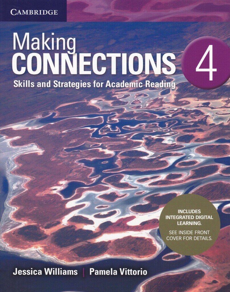 Making Connections teaches an extensive range of reading skills and strategies in order to prepare students for college reading. Making Connections Second edition Level 4 Student's Book develops key reading skills and strategies such as recognizing patterns of textual organization, understanding how writers create connections within and across sentences, and learning how to process academic language and vocabulary. It features high- interest topics, including technology, biomedical science, business, and engineering. Each student's book contains a single- use code for access to audio files of the readings in the CLMS.