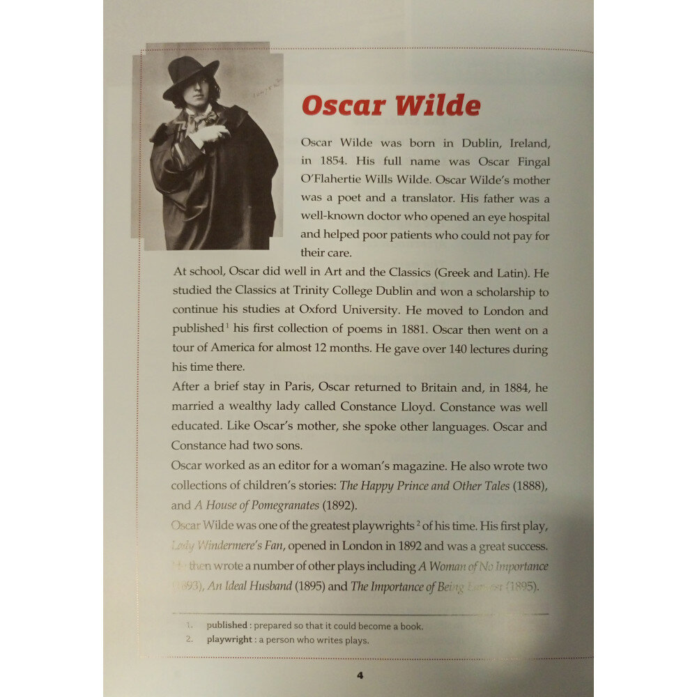 Adapted literature. Адаптированная литература / Уровень В1. 2 Two men have secret lives. Two women want to marry a man called Earnest. But who is Earnest? Is he a badly behaved brother, the ideal fiancй or Lady Bracknell's nephew and fun-loving bachelor, Algernon Moncrieff? Follow the incredible events that lead to the discovery of the importance of being Earnest in this adaptation of Oscar Wilde's witty and highly entertaining play. У двух мужчин есть тайная жизнь. Две женщины хотят выйти замуж за мужчину по имени Эрнест. Но кто серьезен? Кто он - плохо воспитанный брат, идеальный жених или племянник леди Брэкнелл и веселый холостяк Алджернон Монкрифф? Следите за невероятными событиями, которые приводят к открытию важности серьезности в этой адаптации остроумной и очень занимательной пьесы Оскара Уайльда.