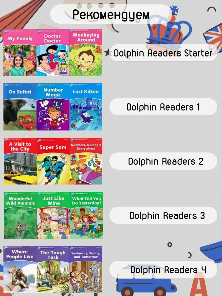 Комплект состоит из Dolphin Readers 2 Circles and Squares, Double Trouble, A Visit to the City, Numbers, Numbers Everywhere.В комплектацию серии входят аудио и рабочие тетради.Адаптированные книги для чтения серии Dolphin Readers с художественными и познавательными текстами расскажут детям о мире вокруг них. Рассказы и межпредметные тексты с цветными иллюстрациями заинтересуют детей и превратят изучение английского языка в увлекательное занятие. Комплексные задания присутствуют на центральном развороте. В каждой книге - заметки для учителей и родителей. Серия предназначена для учащихся начальной школы.Ключевые особенности:- Интересные темы, связанные с другими темами из учебного плана.- Иллюстрации включают полноцветные изображения и фотографии.- В обширном разделе действий предусмотрены различные уровни.- Каждый ридер содержит практический словарь изображений.- Курсивный скрипт используется на уровне стартер.- Интернет-ресурсы для интеграции навыков чтения в вашем классе.