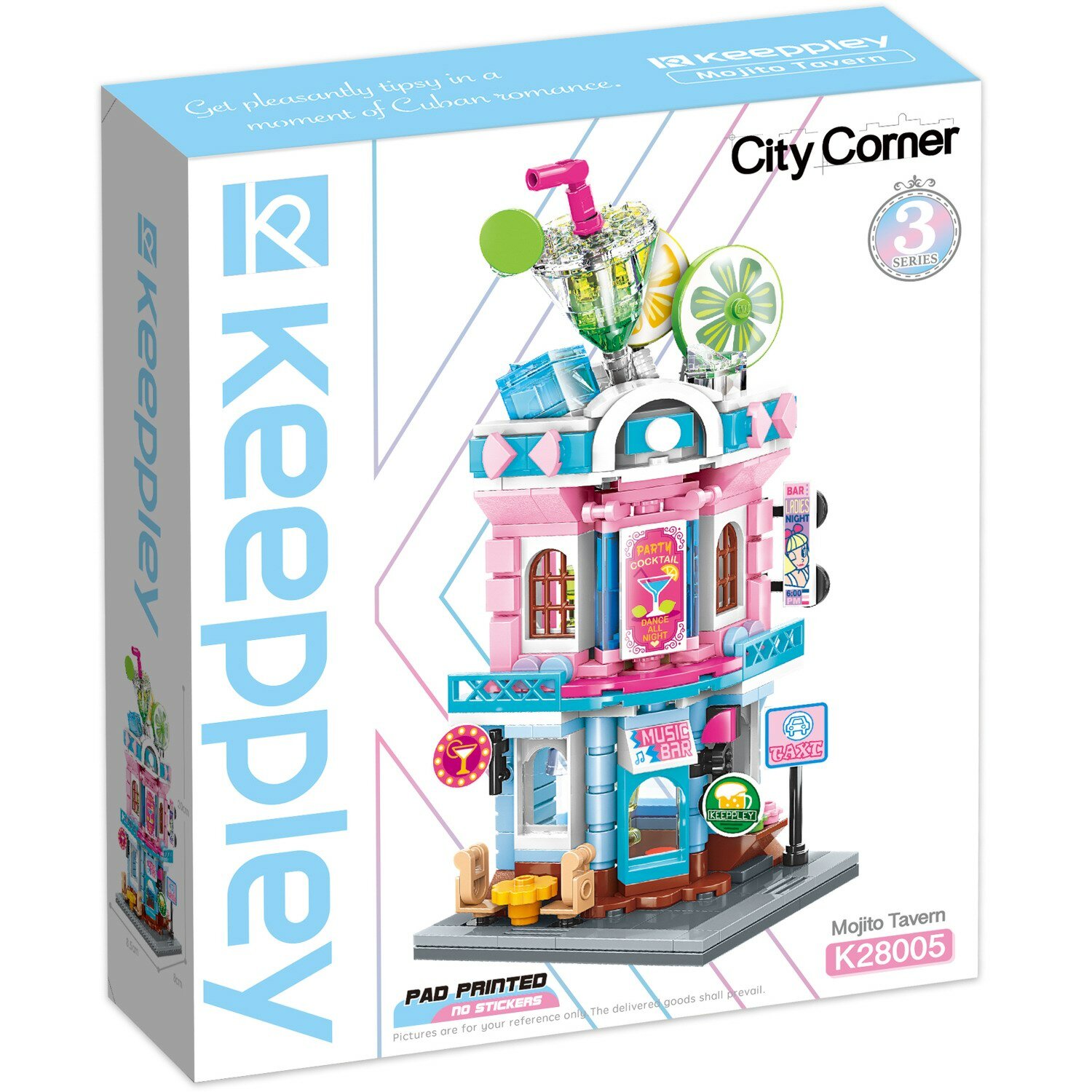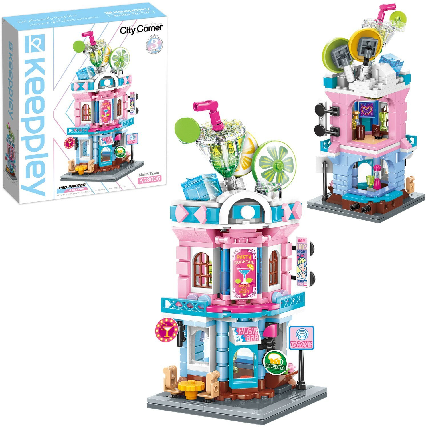 Из конструктора от бренда Keeppley из серии «City Corner» ребенок может собрать собственными руками замечательное кафе с большим ассортиментом вкусных напитков. Простое и надежное соединение деталей разных размеров и форм между собой обеспечат специальные крепления. Во время игры ребенок сможет задействовать свою фантазию и придумать интересные сценарии. В процессе сборки и игры с готовой моделью юный конструктор будет развивать мелкую моторику рук, пространственное мышление, внимательность и усидчивость.