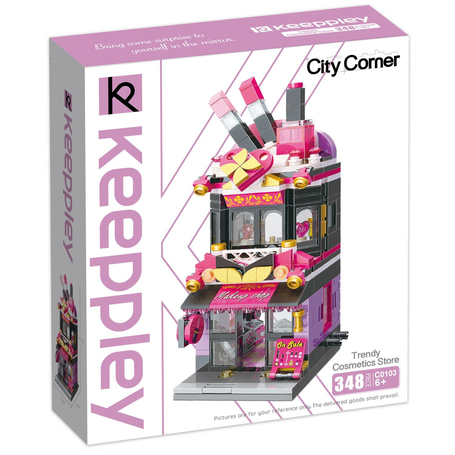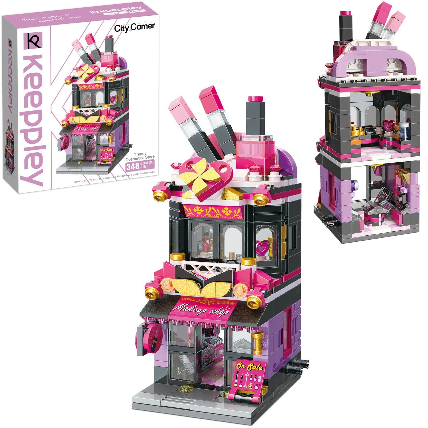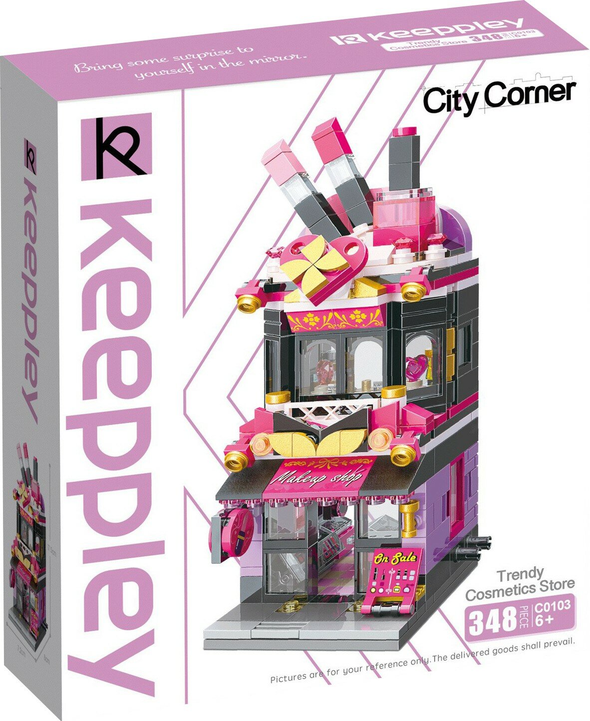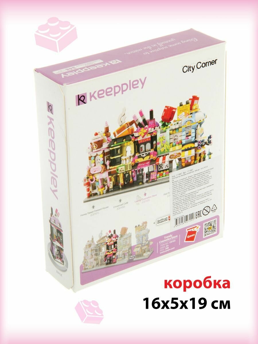 Из конструктора от бренда Keeppley из серии «City Corner» ребенок может собрать собственными руками роскошный магазин косметики, такой притягательный для маленький модниц. Простое и надежное соединение деталей разных размеров и форм между собой обеспечат специальные крепления. Во время игры ребенок сможет задействовать свою фантазию и придумать интересные сценарии. В процессе сборки и игры с готовой моделью юный конструктор будет развивать мелкую моторику рук, пространственное мышление, внимательность и усидчивость.
