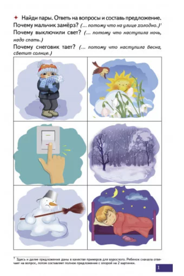 Пособие предназначено для детей, которые учатся составлять связные предложения. Работая с этим набором, ребенок научится отвечать на вопросы, а также составлять сложноподчиненные предложения с союзами "потому что", "чтобы", "когда", а также предложения с однородными сказуемыми. Работа с данным набором карточек, способствует тому, что речь ребенка станет связной, грамматически правильно оформленной, красивой.