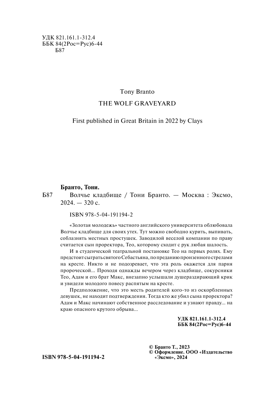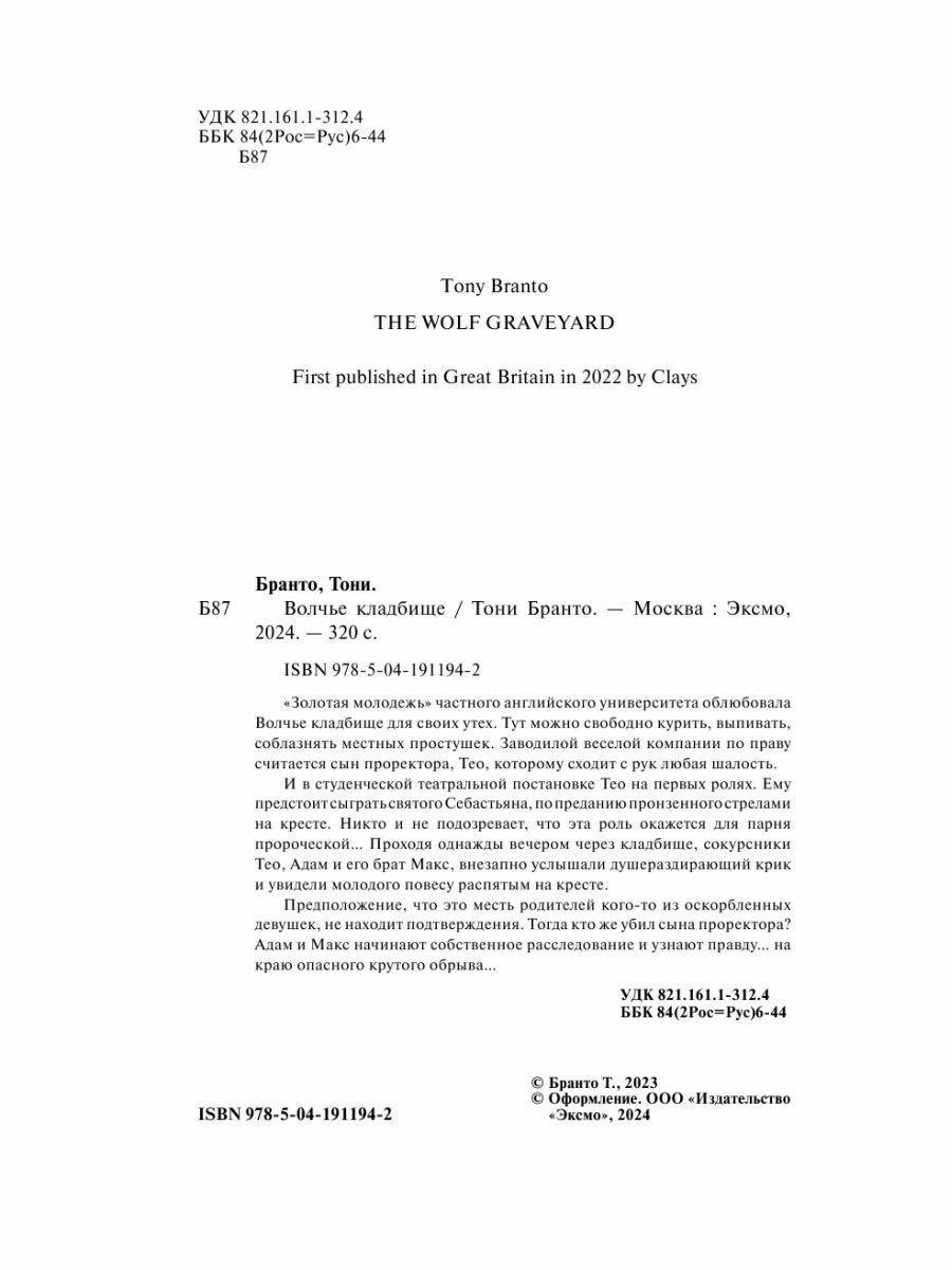 Книга: Волчье кладбище (Бранто Т.); ООО "Издательство "Эксмо", 2023