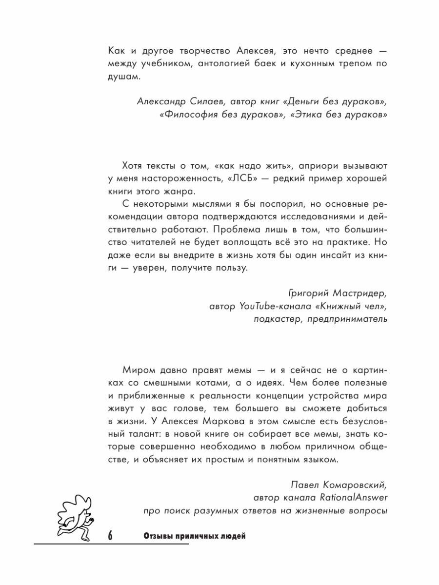 Почему сила воли работает плохо и зачем избегать тупости? Какие дела стоит сделать прямо сейчас, а какие лучше выкинуть из жизни? Чем привычки лучше целей? Как сделать что то новое и интересное, не бросив все в самом начале? Ответы на эти и другие вопросы найдете внутри. Внимание! Знания переданы с фирменным юмором и очень легким языком — скучно не будет!