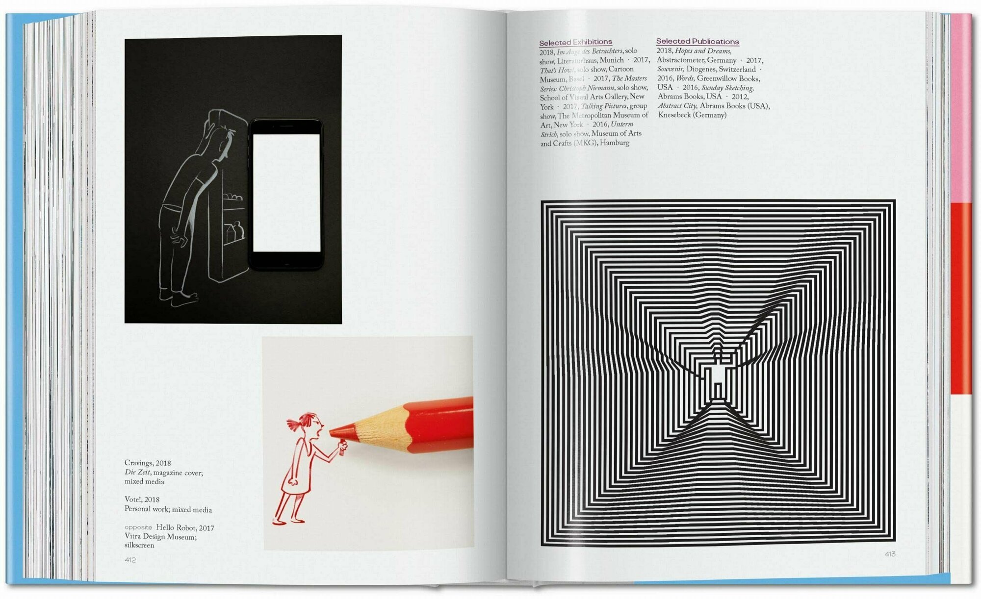 A global compilation of must-know artists. For the last couple of years, Steven Heller and Julius Wiedemann have traced the latest developments in illustration around the globe—and for all those who thought digital heralded the end of an era, they’re here to set the record straight. There were extraordinary eras before mass media changed our viewing habits, back in the day when illustration was the primary means of illuminating the word on paper—all the way to today, when we get our words and images on screens as small as a watch face. In this environment, today’s designers and artists are holding their own brilliantly. Illustration is more free and varied than ever, and it is ubiquitous in all kinds of media, from paper to screen to books, packages, clothing, cars, and restaurants. This book celebrates the sheer quality, diversity, intensity, comedy, vivacity, and exceptionality of the work being created by illustrators right now. The artists in this collection are just the tip of the proverbial iceberg, but they represent a compelling snapshot of the styles, techniques, and use of color by artists around the world. We dare you to pick your favorites.