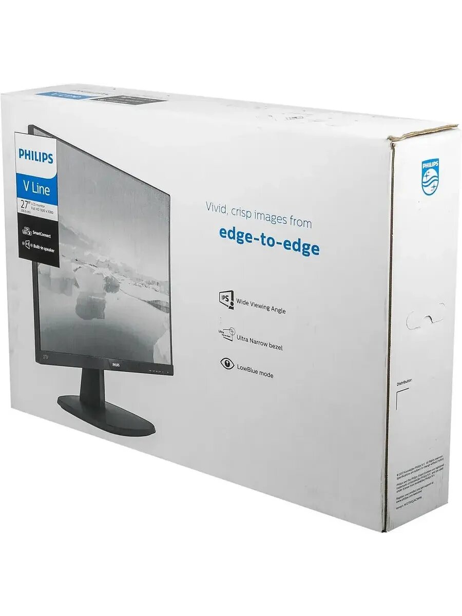 Монитор Philips 273V7QJAB подходит для использования дома и в офисе. Его IPS-матрица воспроизводит четкое изображение с высокой контрастностью и яркими насыщенными цветами. Благодаря этому упрощается работа с электронными таблицами и сложными графическими материалами, а фильмы и игры становятся по-настоящему реалистичными. Расширенное пространство. Тонки рамки позволяют устанавливать несколько мониторов в ряд, получая при этом практически неразрывную картинку. Это облегчает одновременную работу с несколькими приложениями и обеспечивает превосходный обзор в играх.Удобная настройка. В системе SmartImage предусмотрены специальные профили для редактирования документов, просмотра видео, интернет-серфинга и других задач. Они отличаются параметрами яркости, контрастности и цветовой насыщенности.Полная безопасность. Длительная работа с компьютером никак не отразится на здоровье и самочувствии пользователя. Монитор минимизирует количество бликов на экране, подавляет мерцание изображения и существенно уменьшает интенсивность вредного голубого свечения.Встроенная акустическая система. Устройство снабжено динамиками, справляющимися со своей работой не хуже компактных компьютерных колонок. Они помогают освобождать место на столе, отказываясь от внешней аудиосистемы.Универсальное применение. Монитор может устанавливаться на стандартной подставке с регулируемым углом наклона или на специальных кронштейнах VESA. Большое количество видеовходов делает его совместимым с самыми разными источниками сигнала.