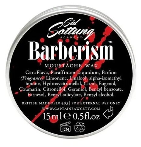 Captain Fawcett Barberism Moustache Wax - воск для усов обладает с одной стороны приятным привычным ароматом, с другой - содержит нотки новизны и свежести. Сочетает в себе верхние ноты лайма и апельсина, средние ноты Rose Galbanum с базовыми нотами кедра, пачулли и мускуса. Способ применения: небольшое количество воска нанести на усы, придавая им нужную форму.