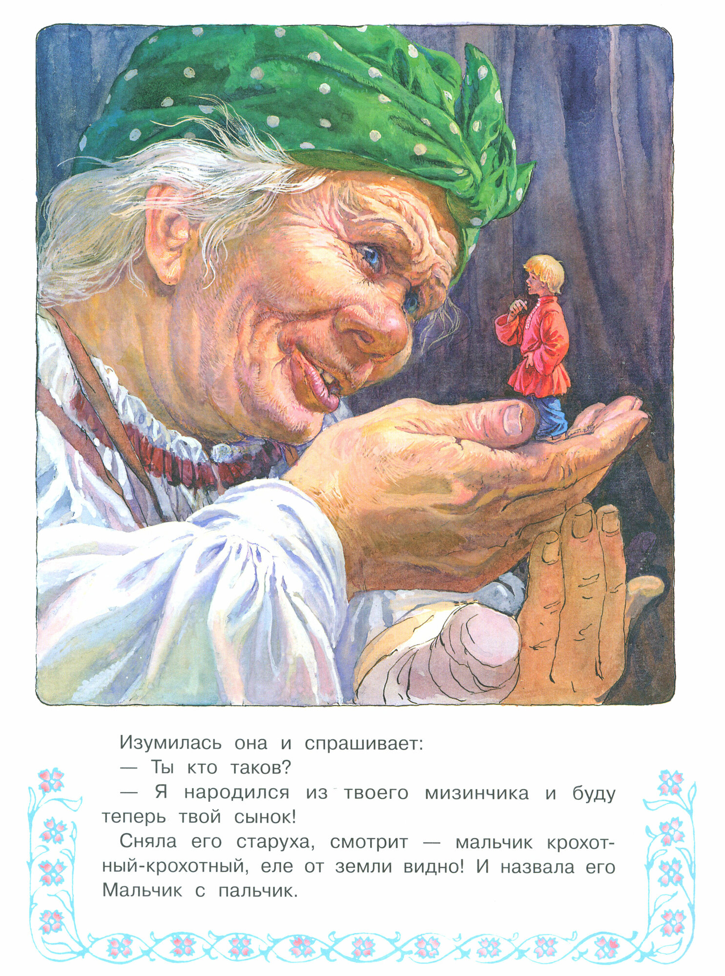 Русская народная сказка "Мальчик с пальчик" в обработке А. Толстого с иллюстрациями одного из лучших художников-графиков советского периода Павла Григорьевича Пономаренко. Его работы можно смело назвать шедеврами книжной графики. За свои иллюстрации П.Г Пономаренко не раз был удостоен медалей на Международных выставках-конкурсах книги.