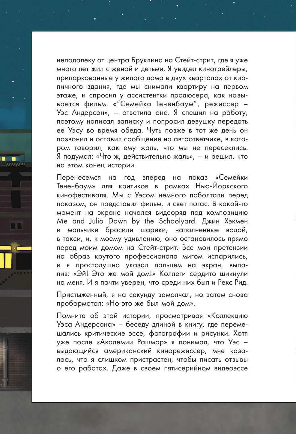 Мэтт Золлер Сайтц является большим поклонником и хорошим другом замкнутого режиссера на протяжении многих лет, поэтому все истории получились откровенными, подробными, а главное — душевными. Каждая глава сопровождается атмосферными иллюстрациями, созданными специально для этой книги.