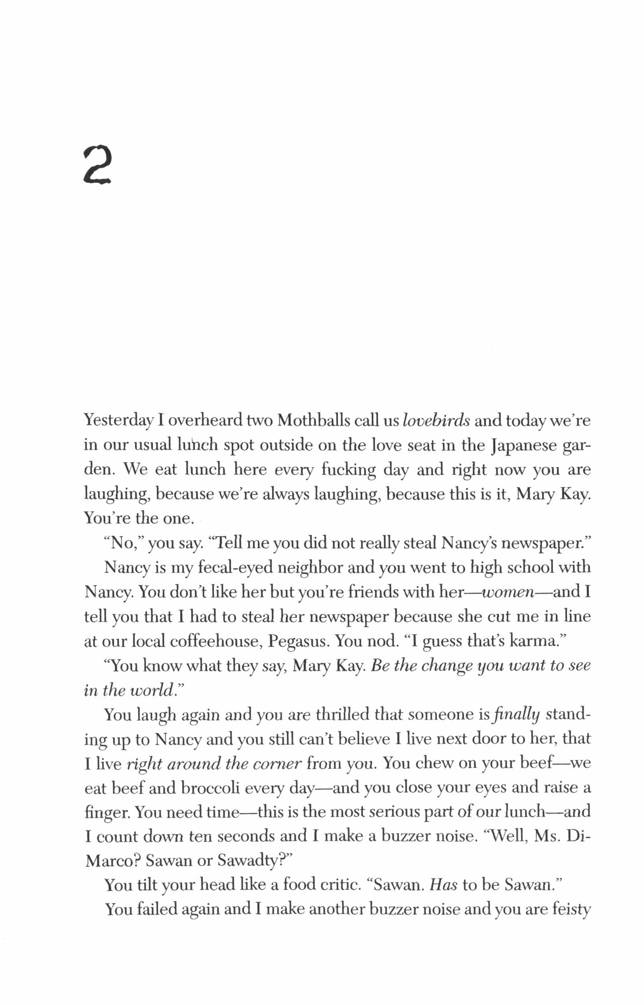 He gets a job at the local library - he does know a thing or two about books - and that's where he meets her: Mary Kay DiMarco. Librarian. Joe won't meddle, he will not obsess. He'll win her the old fashioned way . . . by providing a shoulder to cry on, a helping hand. Over time, they'll both heal their wounds and begin their happily ever after in this sleepy town.
