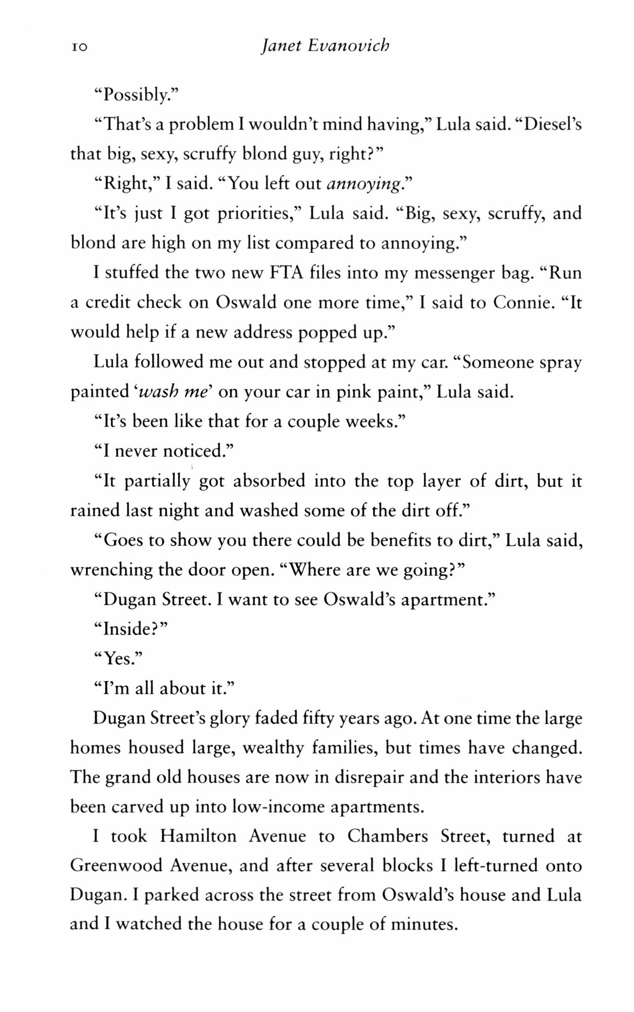 When Stephanie Plum is woken up in the middle of the night by the sound of footsteps in her apartment, she wishes she didn’t keep her gun in the cookie jar in her kitchen. And when she finds out the intruder is fellow apprehension agent Diesel, six feet of hard muscle and bad attitude whom she hasn’t seen in more than two years, she still thinks the gun might come in handy.