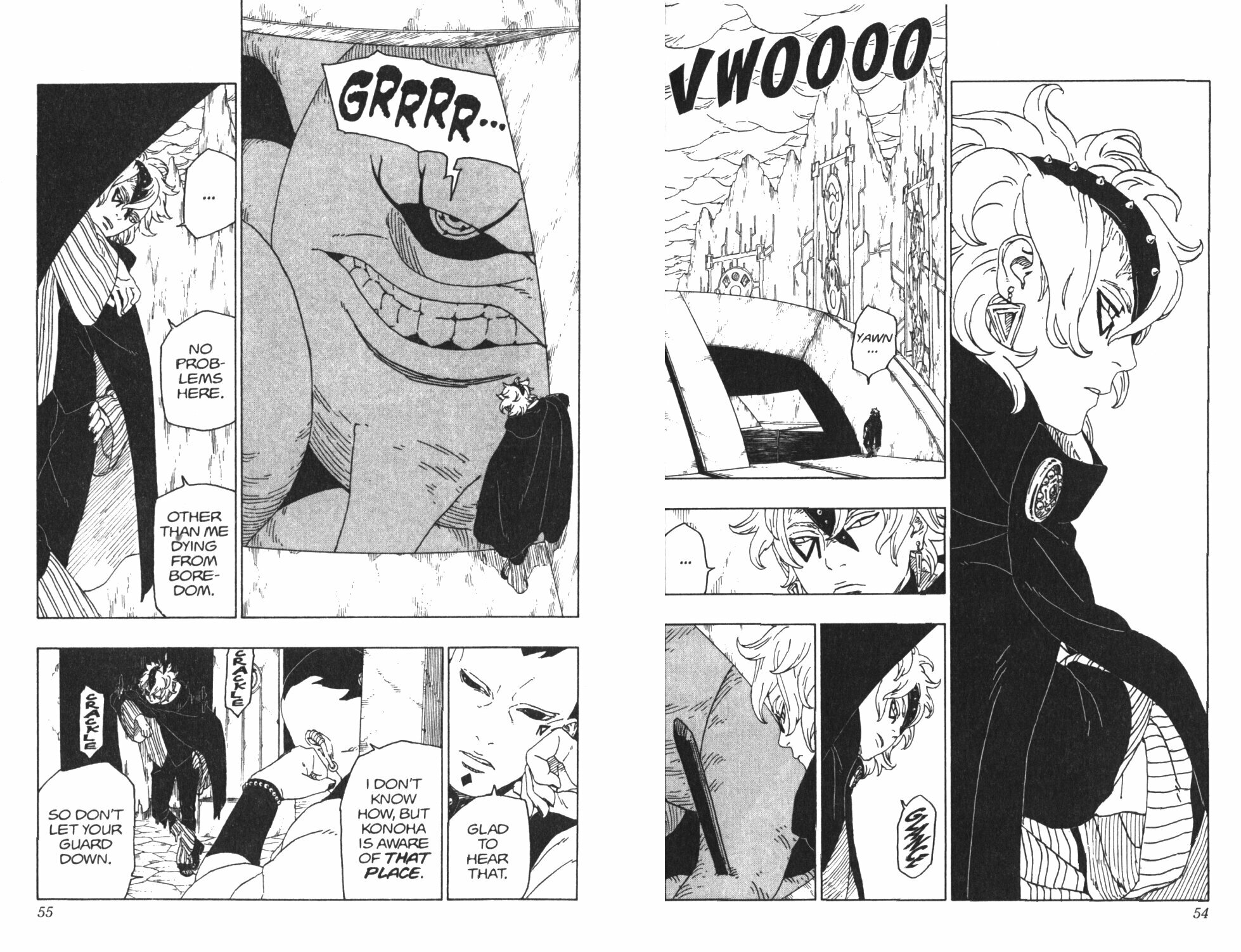 As Naruto recovers from his wounds after being rescued by Boruto and the new Team Seven, nefarious things are happening within Kara. Kashin Koji and Amado seem to have betrayed their leader, Jigen. What is the reason for their sudden turn, and just what is Jigen’s true identity?