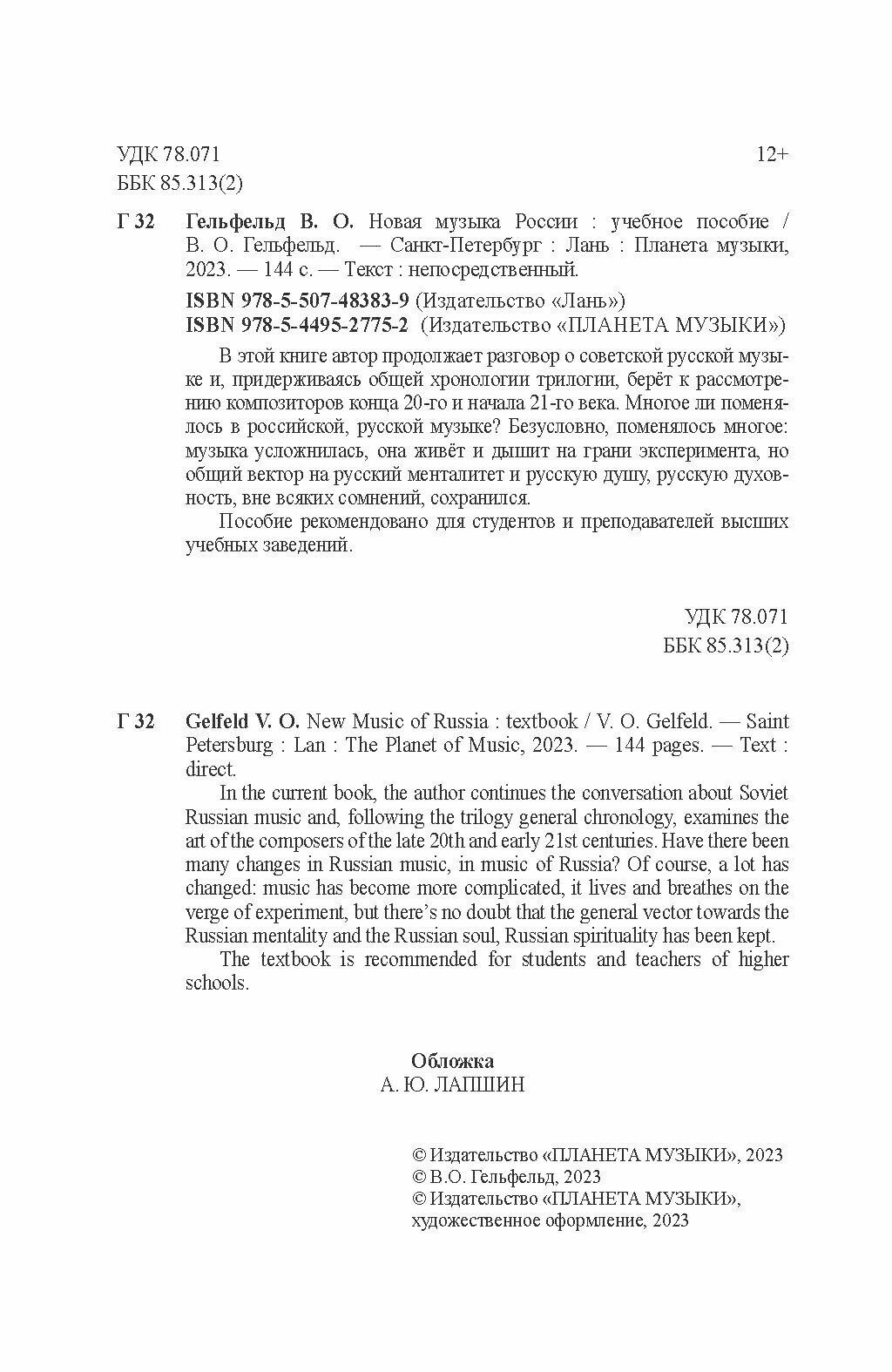 Книга: Новая музыка России (В. О. Гельфельд); Издательство «Планета музыки», 2023