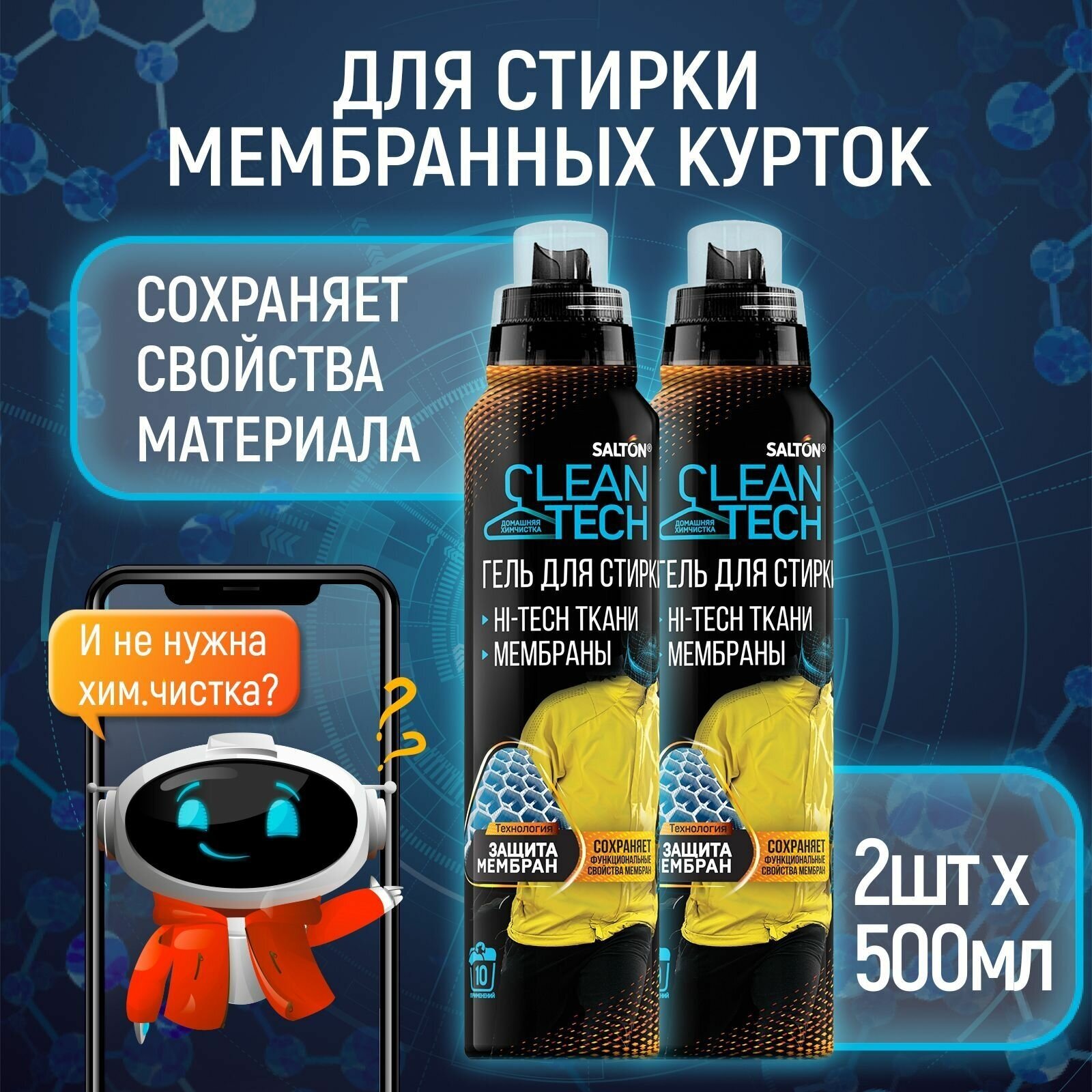 Гель для стирки изделий из мембранных тканей Salton CleanTech бережно и эффективно удаляет загрязнения и сохраняет ткани
