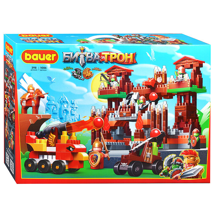 Детская развивающая игрушка-конструктор Бауер Битва за трон это новая современная версия блочного конструктора, изготовленного из безопасного пластика и пищевых красителей. Предназначен для детей от 3х лет. Развивает мелкую моторику, пространственное мышление и фантазию.