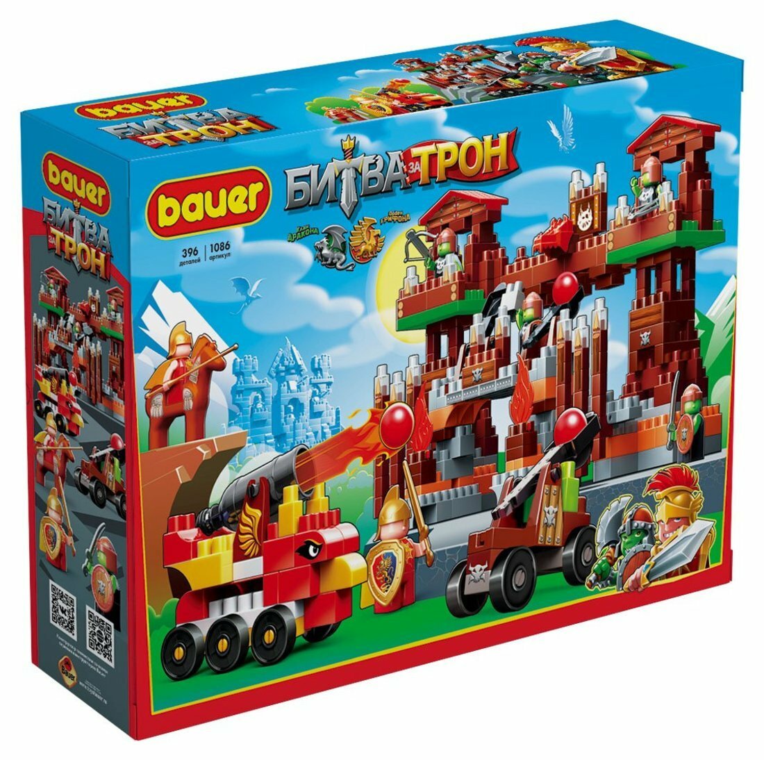 В комплекте: кубики различного размера, фигурки человечков, сборные боевые машины, элементы амуниции. Конструктор Битва за трон — захватывающая игра для детей, позволяющая строить объекты различной сложности. Во время игры ребенок учится различать цвета, геометрические фигуры и изучает пространственное моделирование. Конструктор Bauer «Битва за трон» способствует развитию воображения, улучшает мелкую моторику рук, стимулирует творческую активность ребенка. Всего 398 деталей.