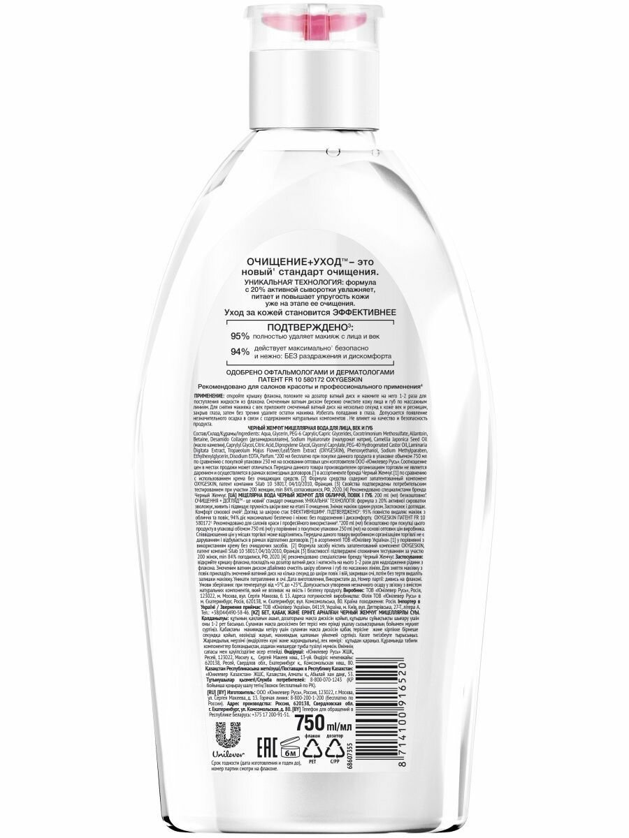 Черный жемчуг Мицеллярная вода для лица век и губ 750 мл