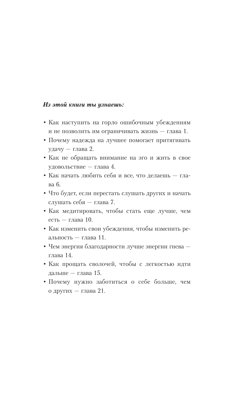 2. В книге собраны все самые действенные методики трансформации жизни. Каждая из них проверена автором на себе, переосмыслена и усовершенствована.