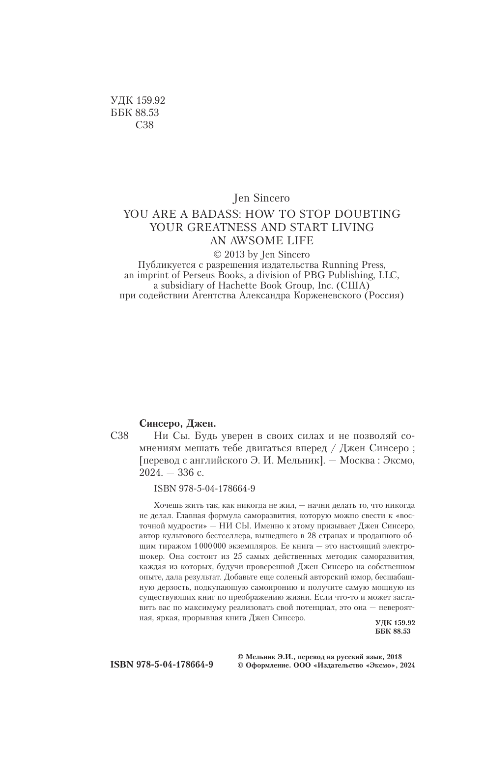 3. Книга написана ярким, остроумным языком. Порой автор играет на грани фола — шутит так, что чувствуешь, как щеки заливаются краской. Но уже к середине книги понимаешь: это делается не просто так. Задача Джен Синсеро — преодолеть психологические защиты читателя, достучаться, докричаться до человека.