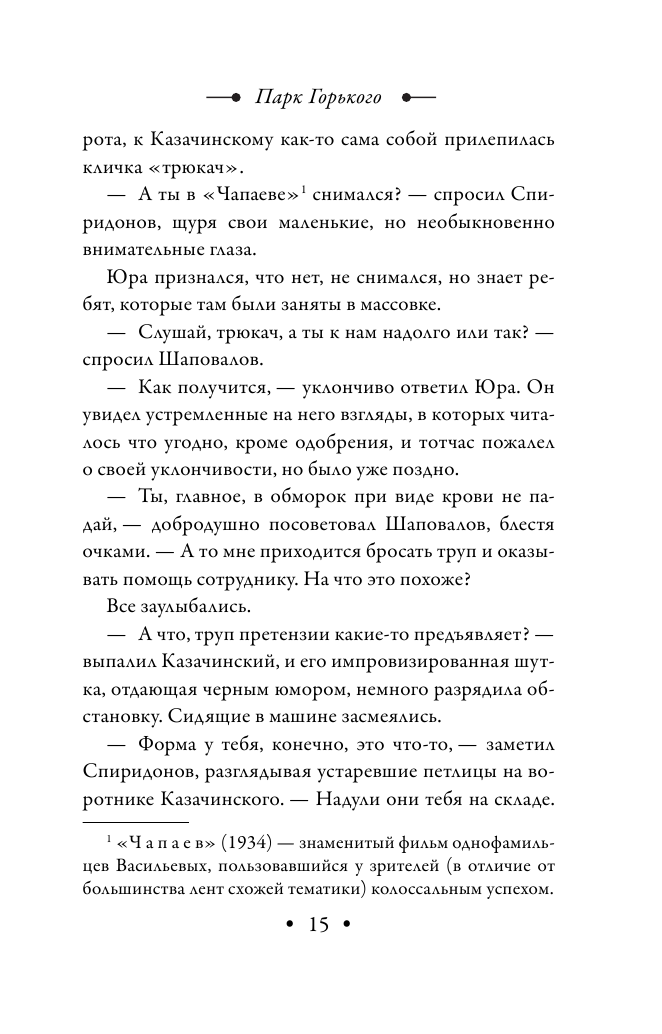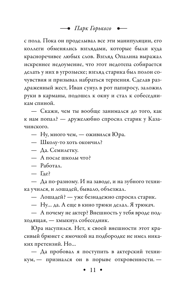 1935 год. В парке Горького в день визита важного заграничного гостя убита молодая женщина. Наверху считают, что это может быть провокацией, предпринятой для дискредитации Советского Союза в глазах иностранцев. Расследование поручено одному из лучших сыщиков московского уголовного розыска Ивану Опалину. Дело кажется ему сравнительно простым, и он даже не отказывается ради него от остальных расследований. Но вскоре выясняется, что жертва, личность которой он установил, по документам уже несколько лет мертва…