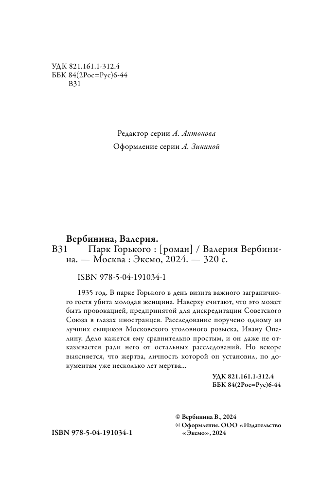 Сервис сравнения цен СкидкаГИД предлагает сравнить цены на товар «Книга: Парк Горького (Валерия Вербинина); Эксмо, Редакция 1, 2023»