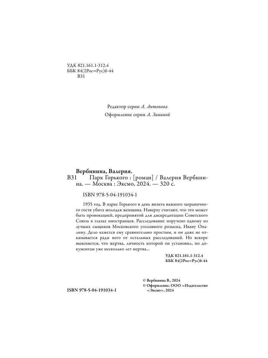 Книга: Парк Горького (Валерия Вербинина); Эксмо, Редакция 1, 2023
