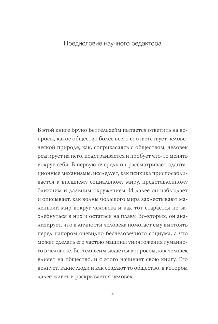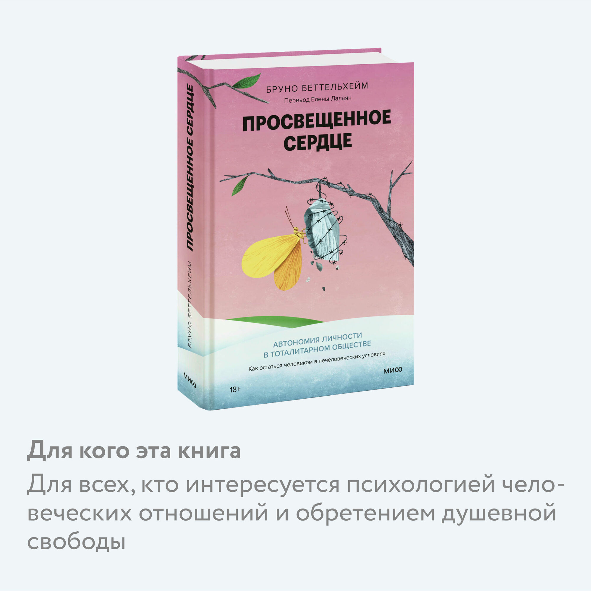 Эта книга подводит итог и лагерному опыту Беттельхейма, и его многолетним размышлениям о взаимодействии человека и общества. Он точно и откровенно описывает механизмы, которые превращают обычного гражданина в жертву системы или шестеренку в машине уничтожения. Но "Просвещенное сердце" — это еще и книга о внутренних устоях, которые не дают человеку склонить голову перед злом. И о том, почему человечество, пережив очередной кризис, всякий раз делает новый шаг вперед.