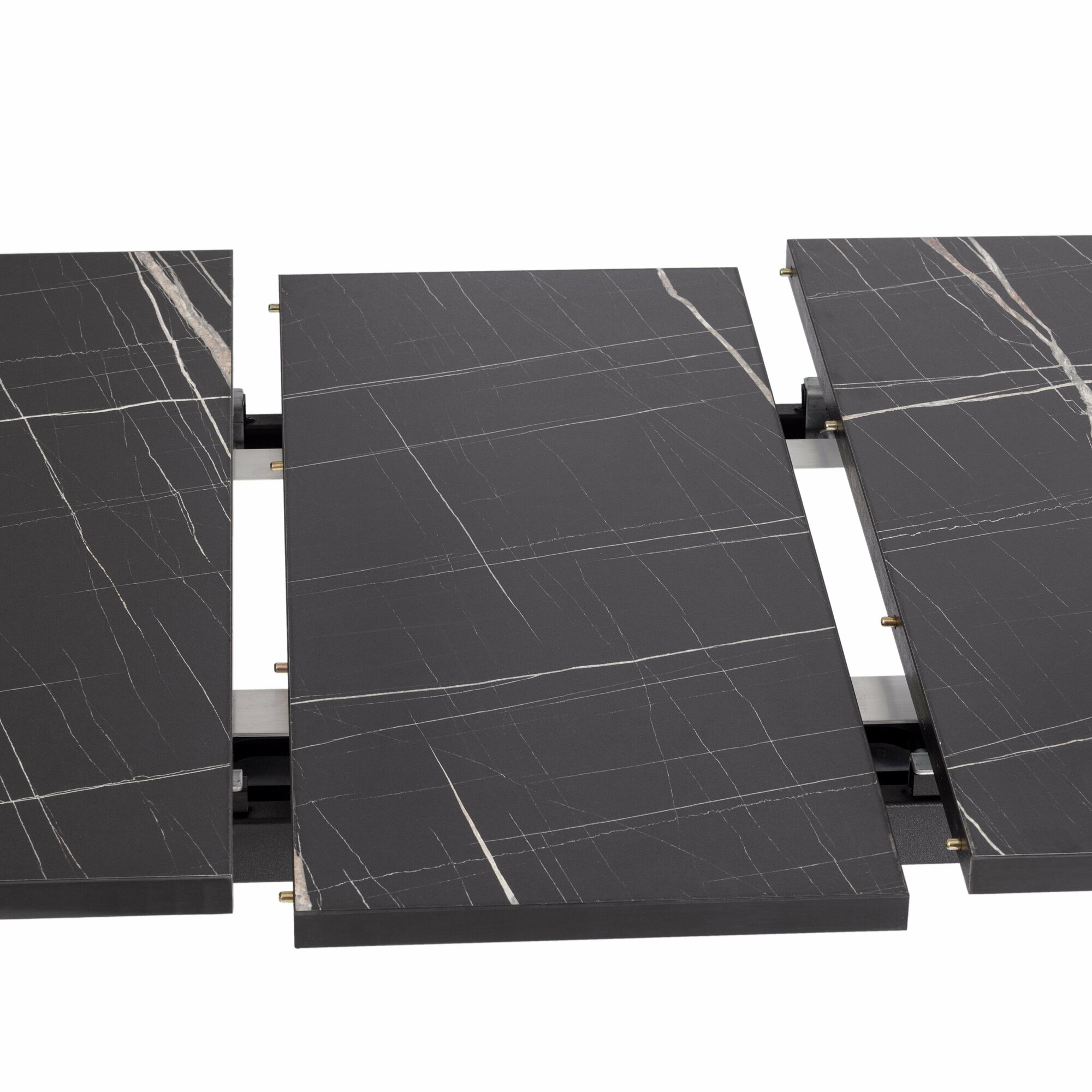 Необычный раскладной стол от ТС сделает оригинальным и узнаваемым интерьер загородного дома или городской квартиры. Необычная форма ножек придаст любому помещению особую индивидуальность и привлекательность. Стол подойдёт гостиной, кухни или столовой. Столешница в цвете мрамор черный и вставка выполнены из ЛДСП толщиной 22 мм на лицевую поверхность которых нанесен защитный слой HPL толщиной 1 мм. HPL имеет защитное покрытие оверлей высокой степени истирания, которое повышает устойчивость поверхностей к повреждениям. Для увеличения размера стола используется автоматический механизм подъема вставки стола. Прочные черные металлические ножки окрашены порошковой краской. Опоры укомплектованы регулировочными винтами, для выравнивания стола на неровных поверхностях. Столешница снабжена фиксаторами. Во избежание самопроизвольного раздвижения половинок столешниц обязательно переключайте фиксаторы в состояние "Закрыто". Стол будет радовать своего владельца долгим сроком службы, надежностью, устойчивостью, привлекательностью, удивит своей красотой и изысканностью даже самых требовательных хозяев. За столом могут разместиться от 2 до 6 человек.
