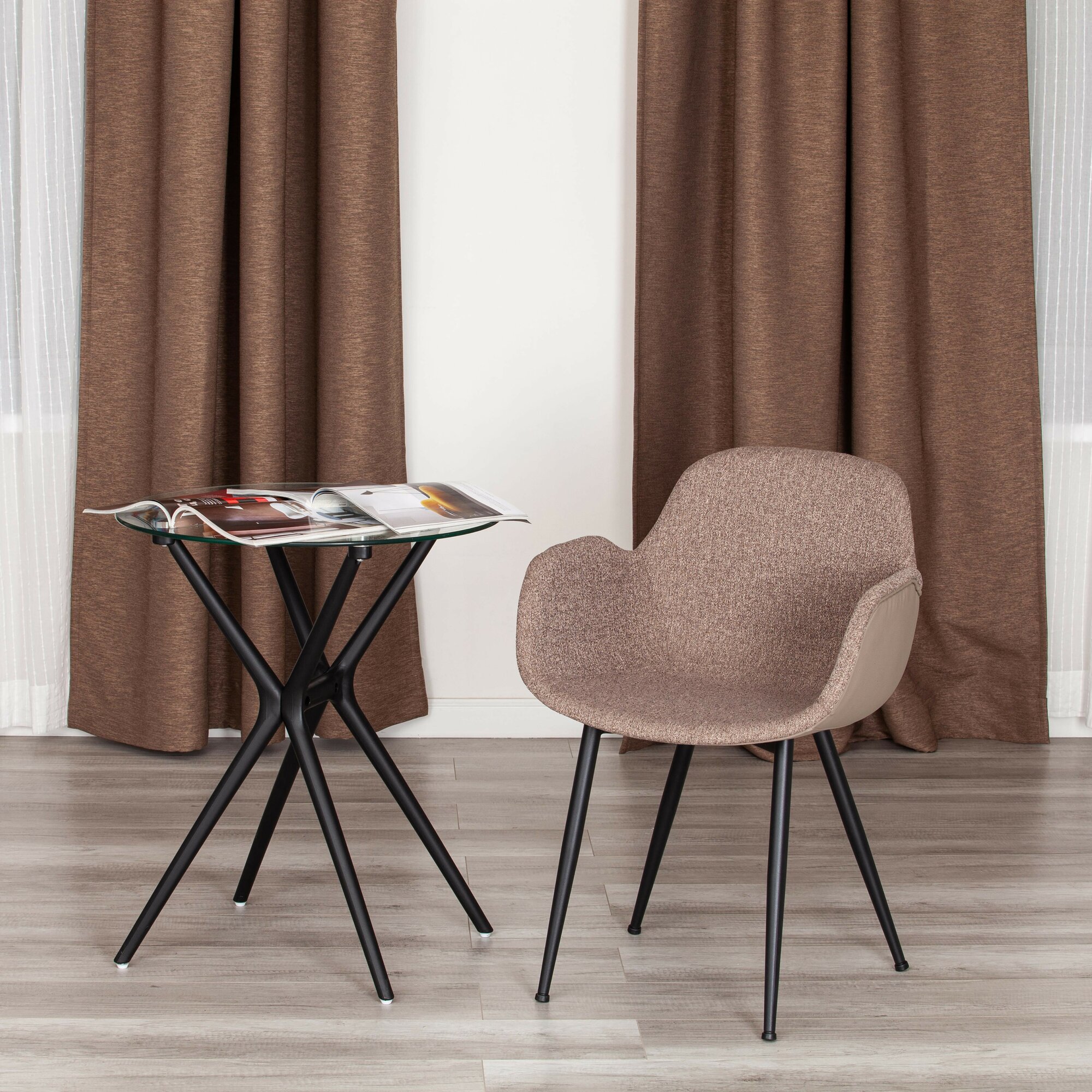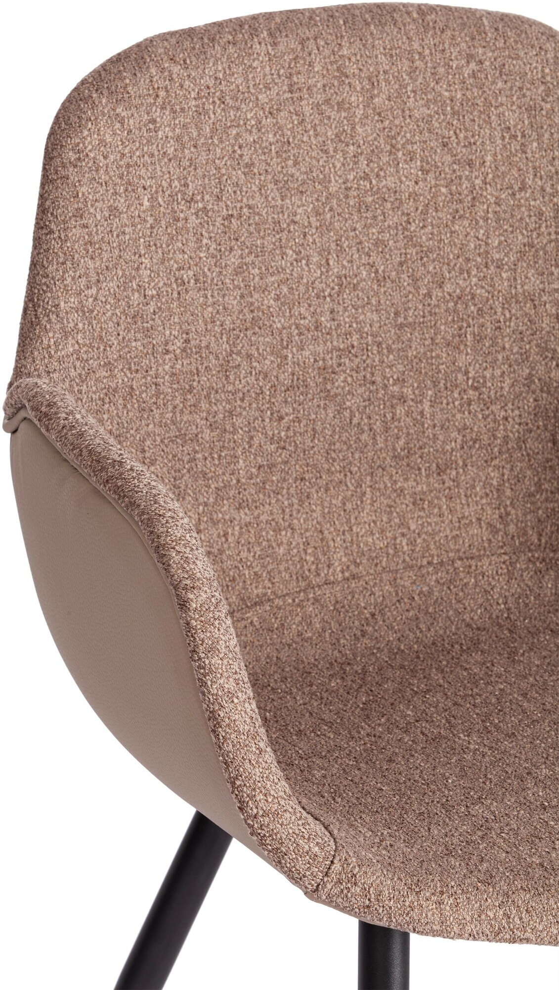 Стильное кресло от ТС станет главным акцентом в загородном доме, городской квартире или ресторане. Плавные изгибы, необычный дизайн, вместительное сиденье сделают стул любимым предметом мебели. Каркас изготовлен из литого пластика, он устойчив, надежен и долговечен. Спинка, плавно переходящая в подлокотники, поможет принять комфортную позу для отдыха, снять напряжение с позвоночника и шеи. С лицевой стороны стул обит тканью прочностью 40 000 циклов по Мартендейлу, с обратной стороны - высокопрочной износостойкой экокожей прочностью 50 000 циклов по Мартендейлу. Такие материалы пропускают воздух, не требует сложного ухода и не теряет своего первоначального вида продолжительное время. Комбинирование передних прямых ножек и задних ножек, расположенных под углом, добавляет модели особую привлекательность и уникальность. Сочетание черного металлического основания и коричневой ткани с экокожей выглядит необычно и стильно. Это кресло станет основным элементом в интерьере, будет красиво смотреться в любом помещении и привлекать внимание каждого гостя, а также располагать к приятным встречам в вашем загородном доме или городской квартире. Стул отлично впишется в интерьер кухни, столовой, бара или кафе.