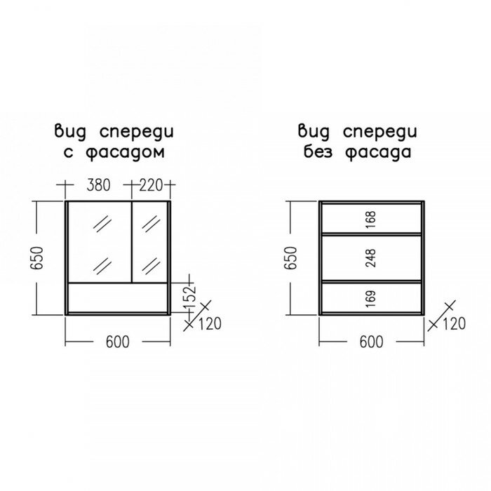 - Размеры (ШхВхГ): 600х650х120 мм.