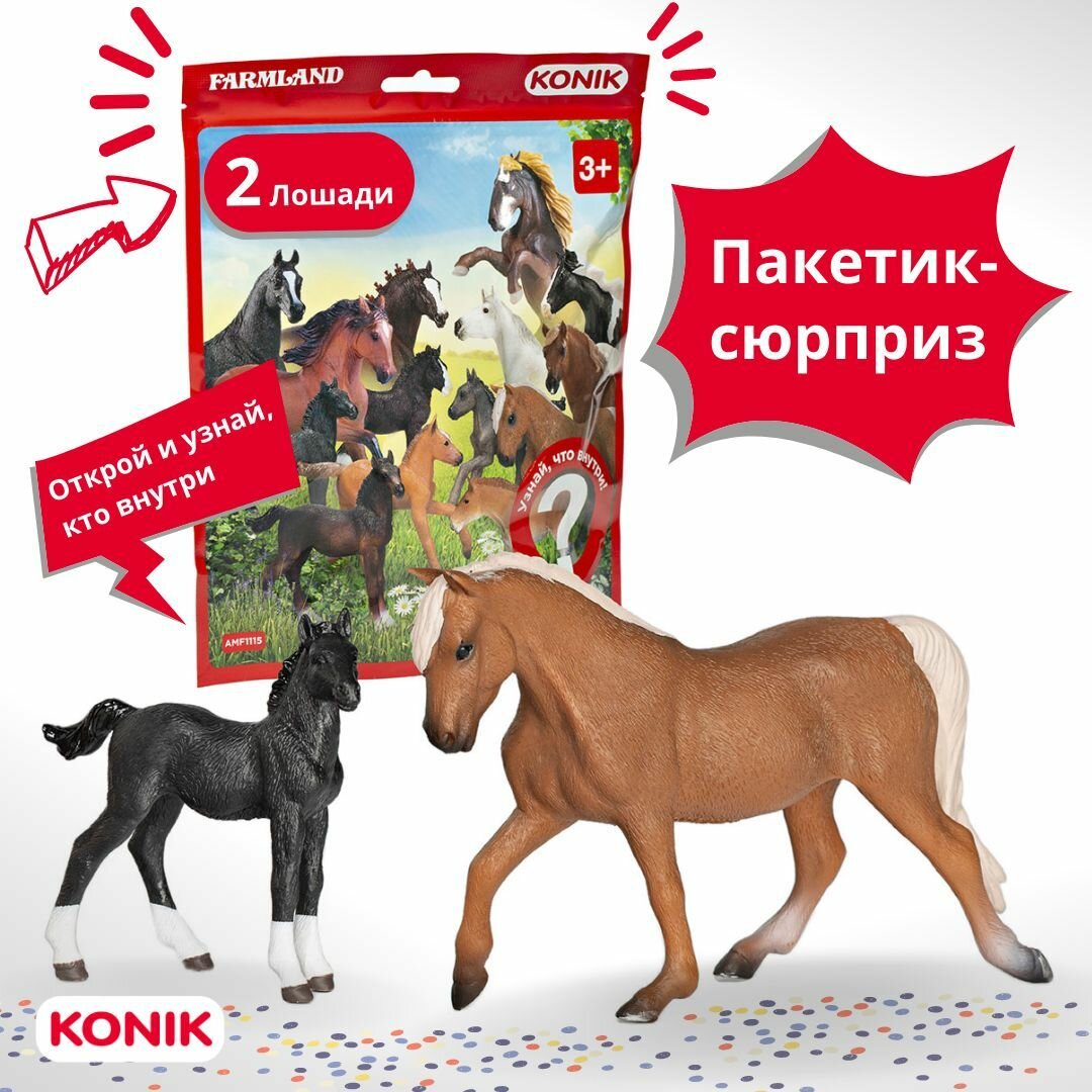Пакетик-сюрприз KONIK Лошади с жеребятами 2 шт Пакетик-сюрприз Лошади с жеребятами 2 фигурки
