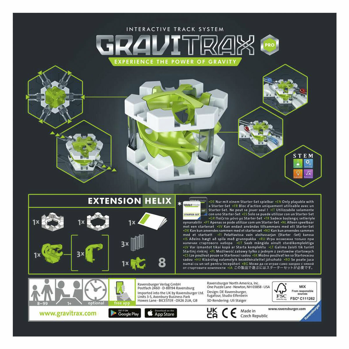 Набор «Спираль» - не самостоятельная игра. Его можно использовать только в сочетании со Стартовым набором GraviTrax или GraviTrax Pro.