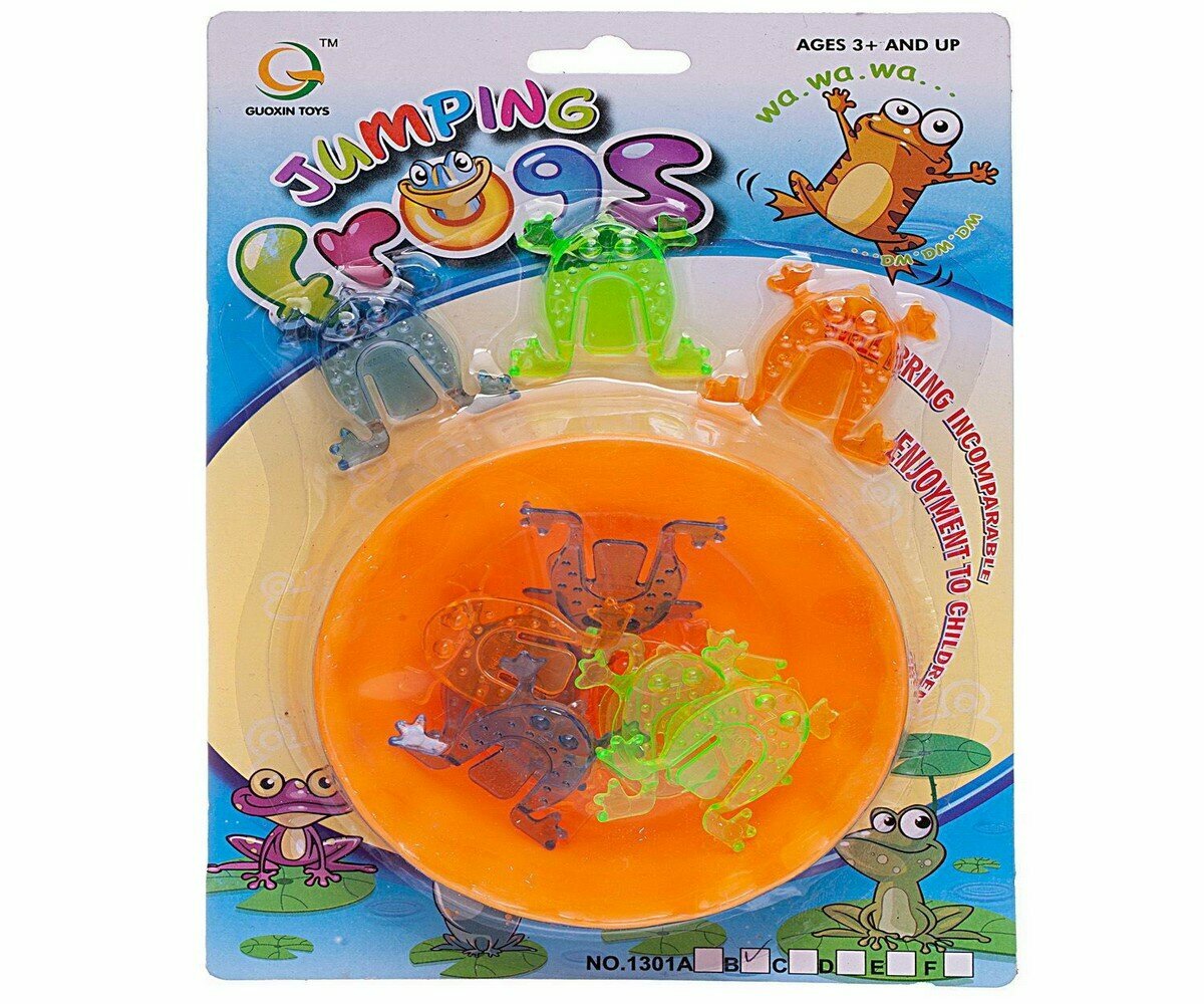 Забавная настольная игра Прыгающие лягушки понравится и детям, и взрослым. В набор входят яркие лягушки, которые действительно могут прыгать, и тарелка, в которую их нужно собрать. Игра предназначена для 2-3 человек.