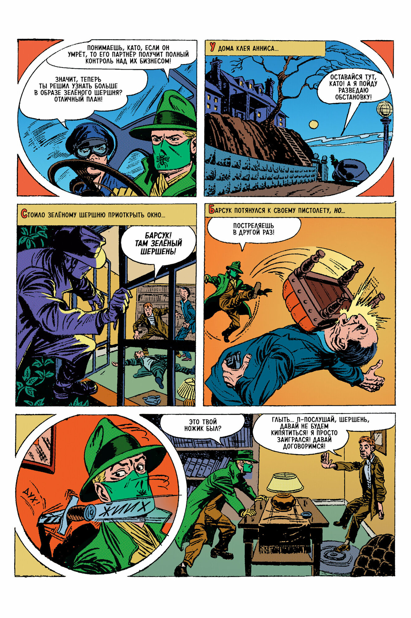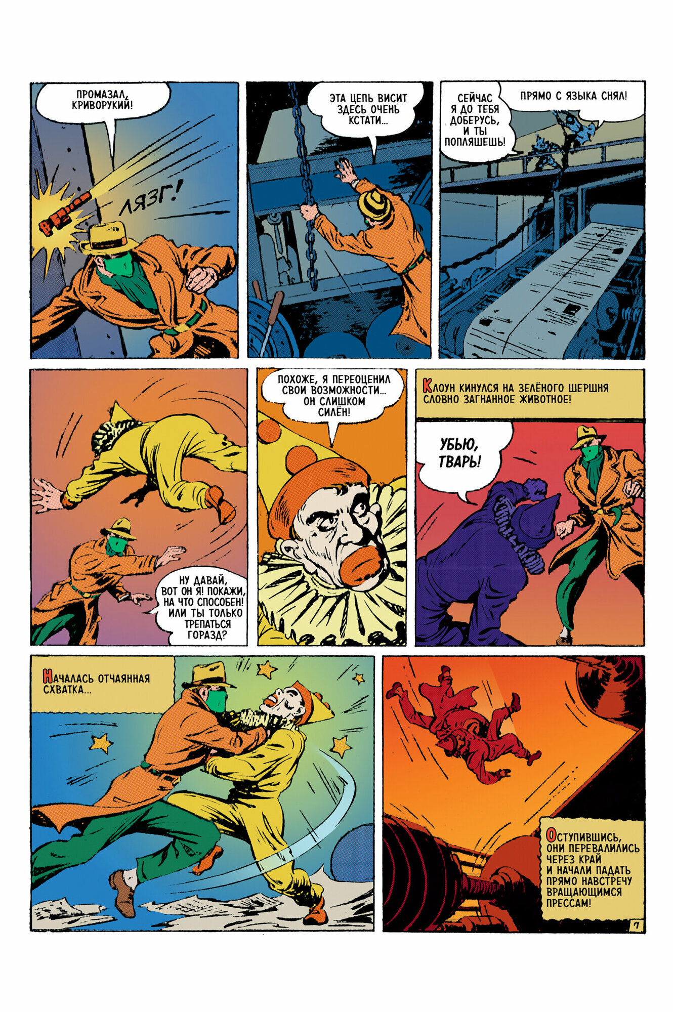 «Зелёный Шершень и дело клоуна-убийцы» (The Case of the Murdering Clown) – Green Hornet #7 (июнь 1942), Harvey Comics