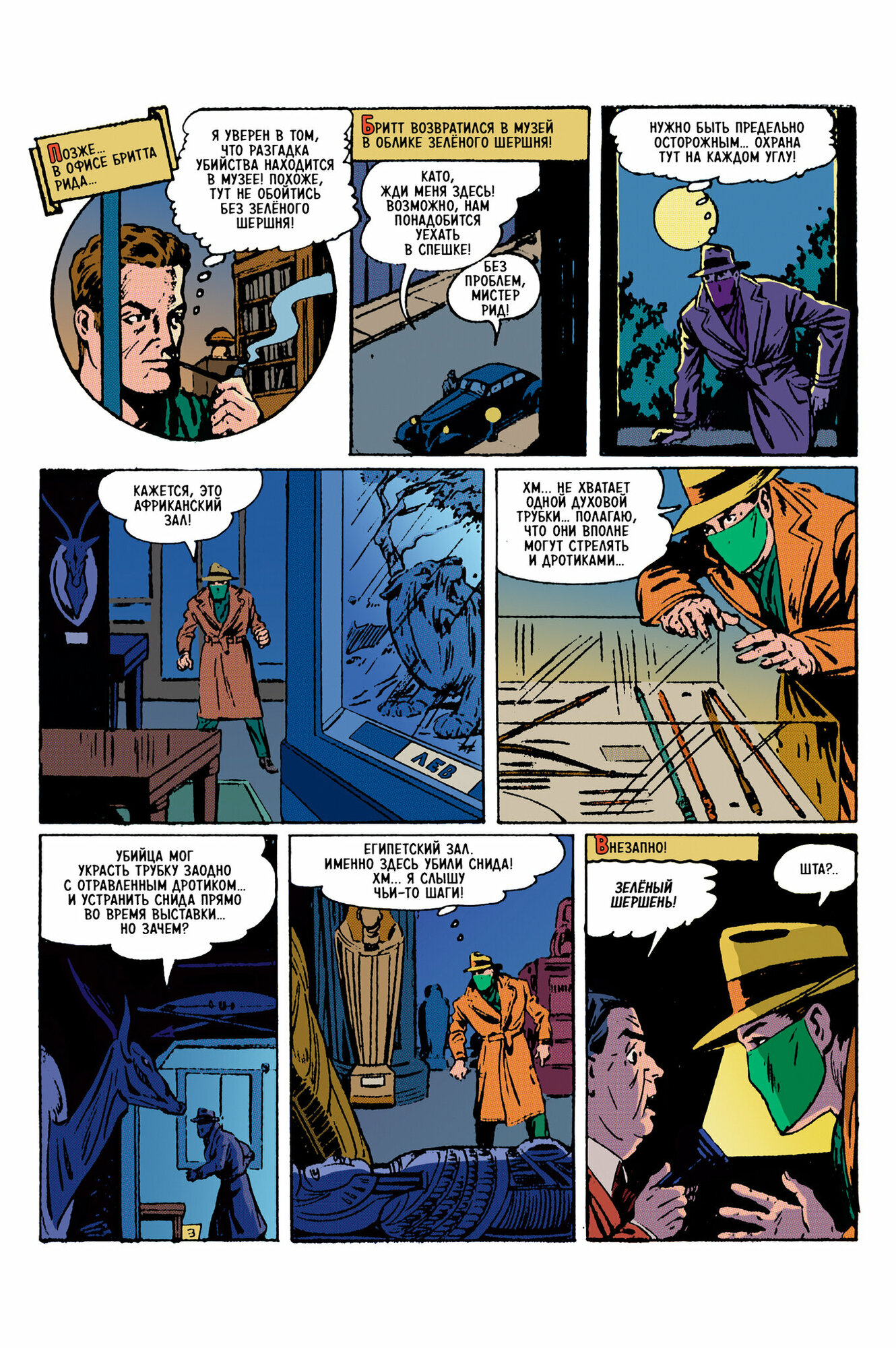 «Зелёный Шершень и дело о музейной мумии» (The Case of Museum Mummy) – Green Hornet #7 (июнь 1942), Harvey Comics