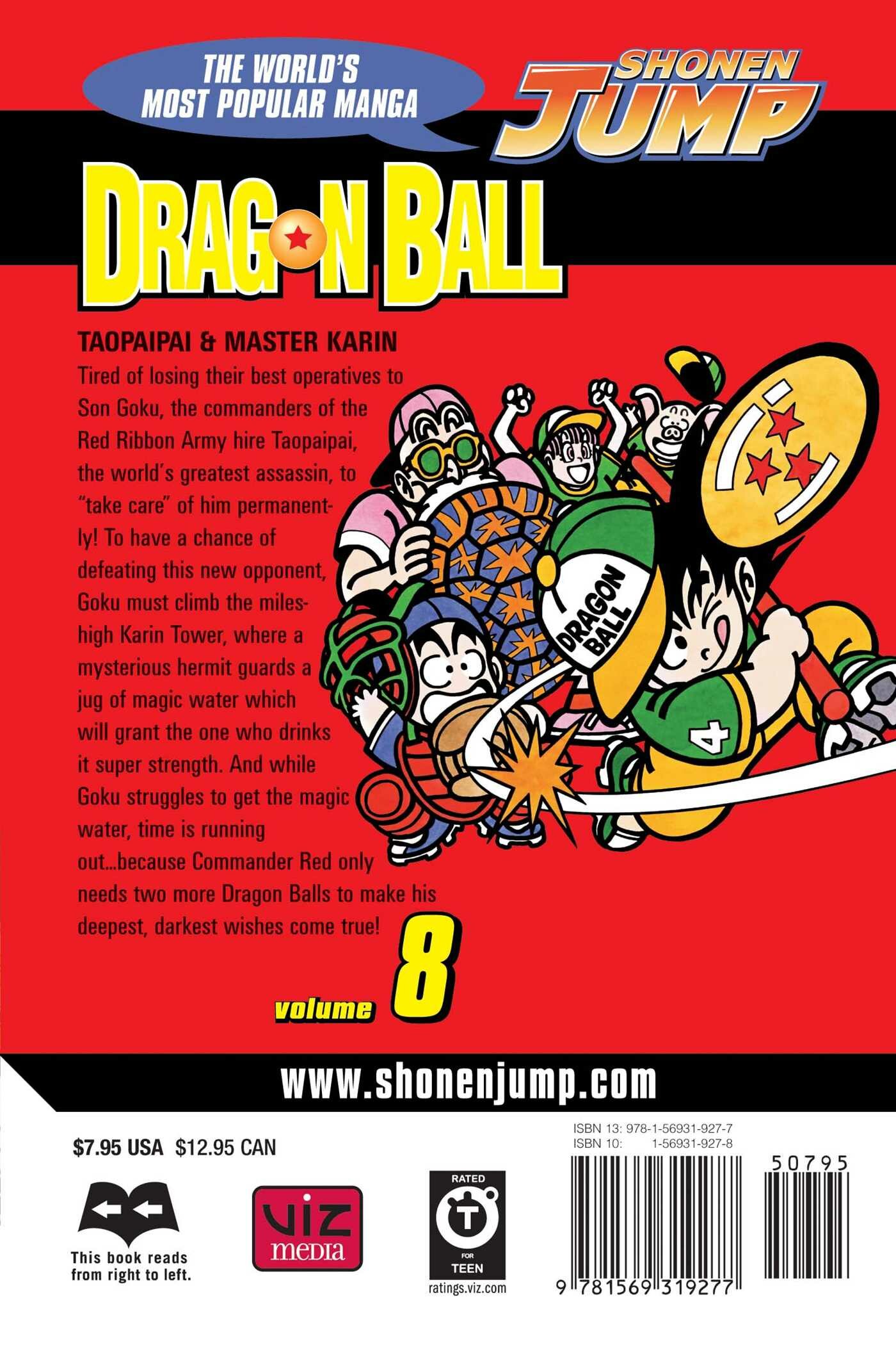 Dragon Ball introduces a young monkey-tailed boy named Goku (a wry update of the classic Chinese "Monkey King" legend), whose quiet life changes when he meets a girl named Bulma who is on a quest to collect seven "Dragon Balls." If she gathers them all, an incredibly powerful dragon will appear and grant her one wish. But the precious orbs are scattered all over the world, and Bulma could use the help of a certain super-strong boy... (In Japan, Dragon Ball and Dragon Ball Z were originally a single 42-volume series. VIZ Media's Dragon Ball contains vols. 1-16 of the original Japanese Dragon Ball, from the beginning of the series to the climax of Goku's last fight with Piccolo.)