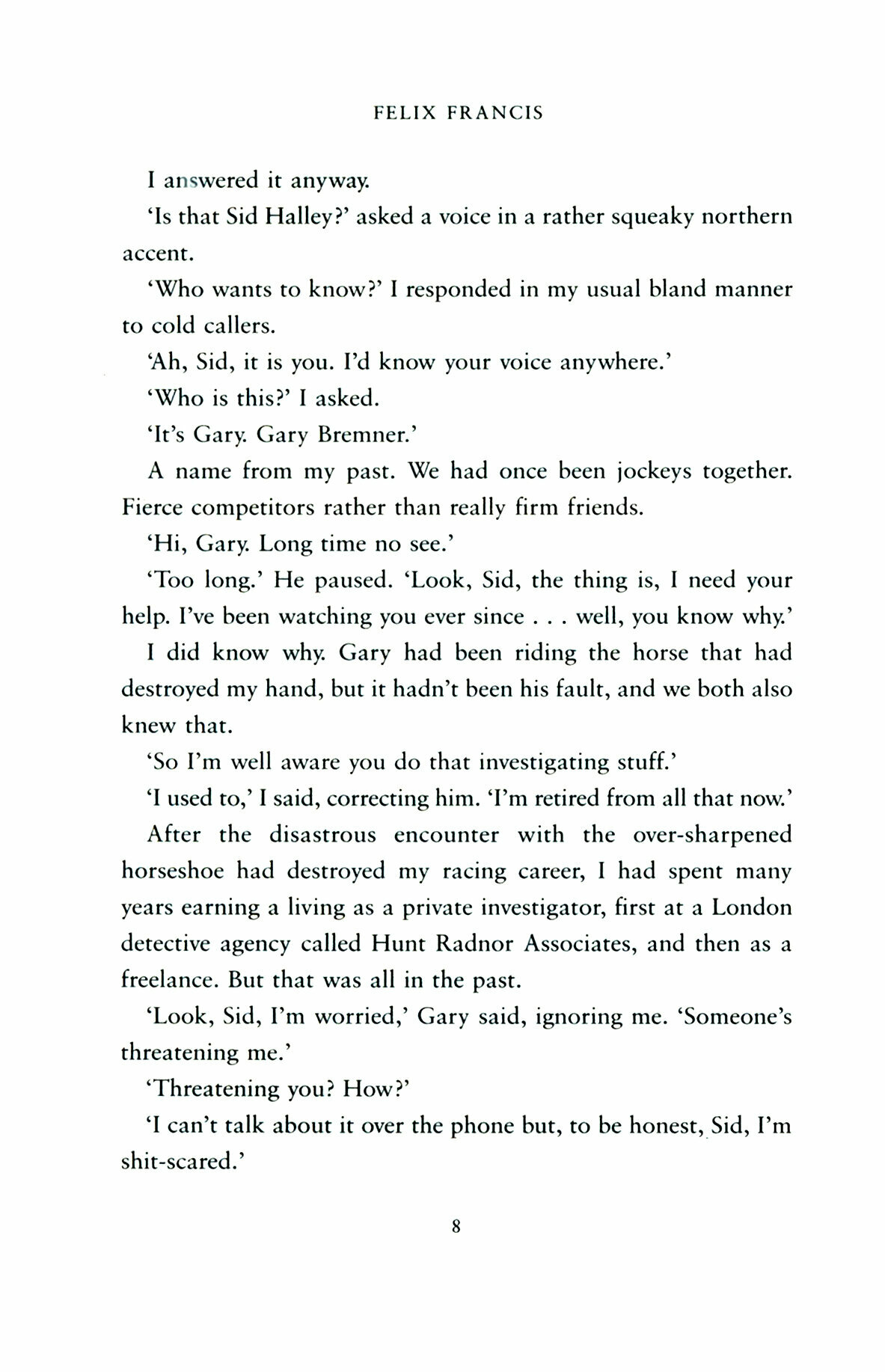 Determined to uncover the truth and to help his friend, Sid starts to investigate. He soon finds himself embroiled in a conspiracy that cuts to the very heart of the integrity of British horse racing, and then danger comes closer to home than ever.