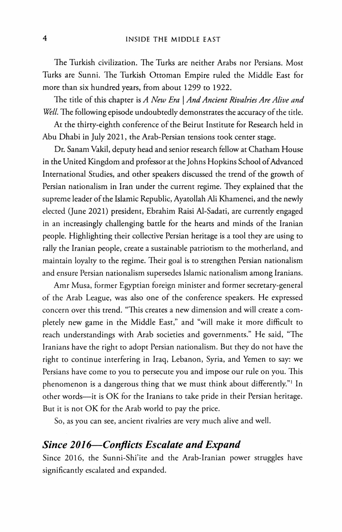 Acclaimed Middle East expert, an Israeli fluent in Arabic, English, and Hebrew, Avi Melamed has a proven exceptional record of foreseeing the evolution of events in the Middle East and their impact on a local and regional level. In this book, Melamed takes you on a fascinating eye-opening journey through the geopolitical landscape of the Middle East in the third decade of the twenty first century. He challenges common Western concepts, narratives, and theories. And he provides predictions about some of the most central regional issues of the day.