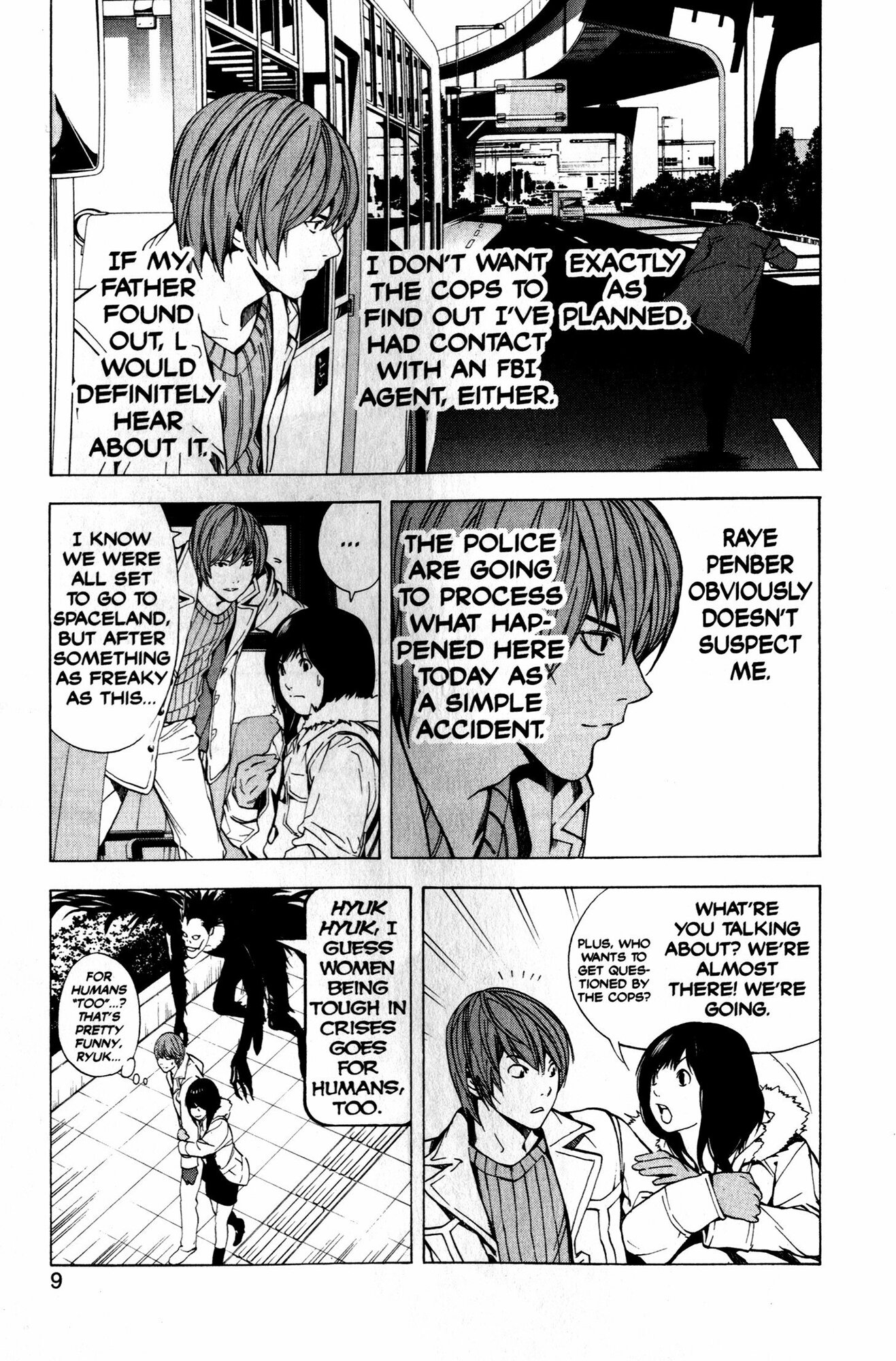 Light thinks he's put an end to his troubles with the FBI - by using the Death Noteto kill off the FBI agents working the case in Japan! But one of the agents has a fiancee who used to work in the Bureau, and now she's uncovered information that could lead to Light's capture. To make matters worse, L has emerged from the shadows to work directly with the task force headed by Light's father. With people pursuing him from every direction, will Light get caught in the conflux?