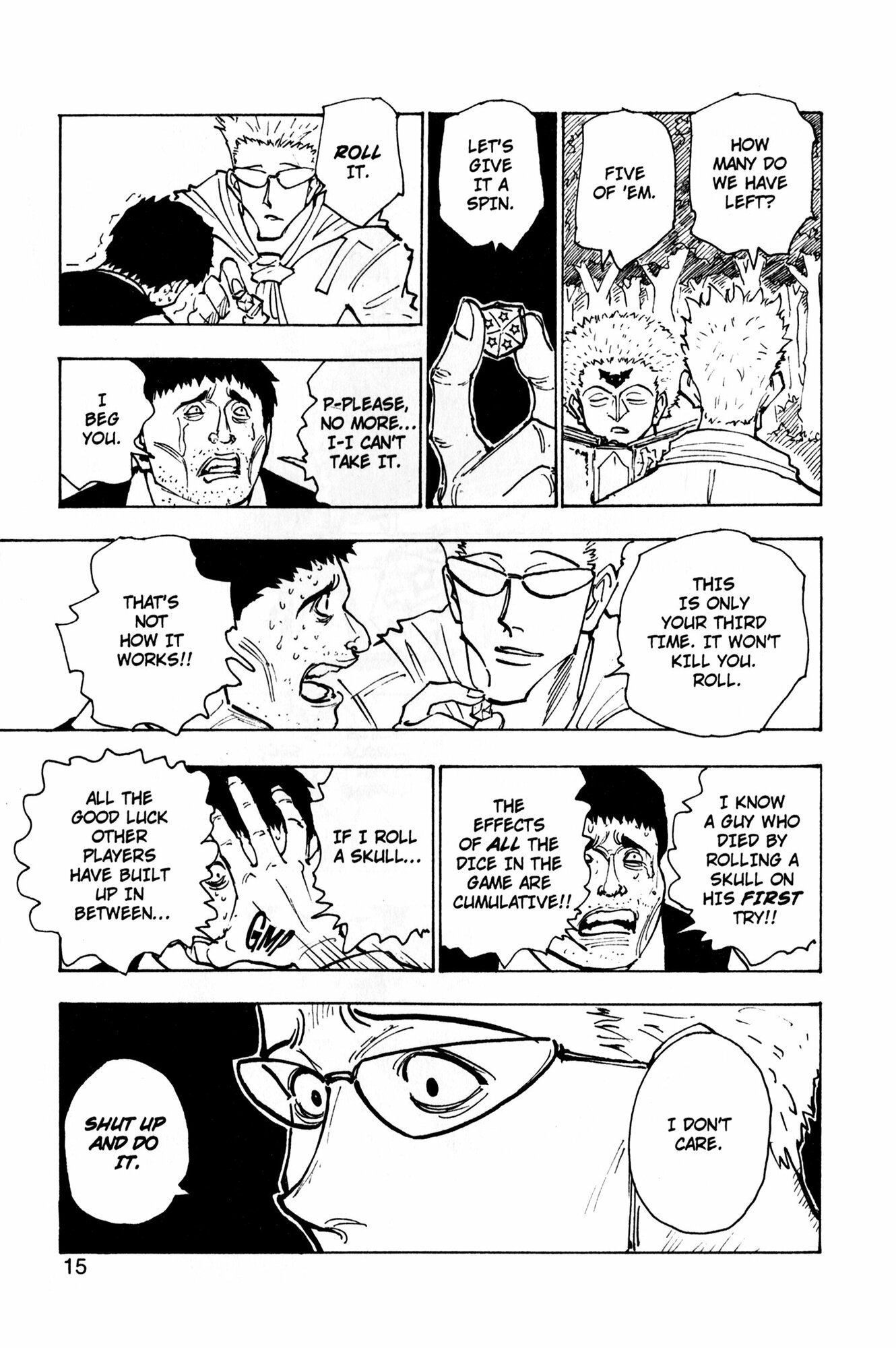 Gon and friends are settling into Greed Island and slowly beginning to understand the strange mechanics of this "video game" world. They gain enough clues from the NPC townspeople to finally get their quest: They must drive Razor and the 14 Devils out of town by beating them at sporting events. The first event--dodge ball! Except in this game if you don't dodge--you die!!