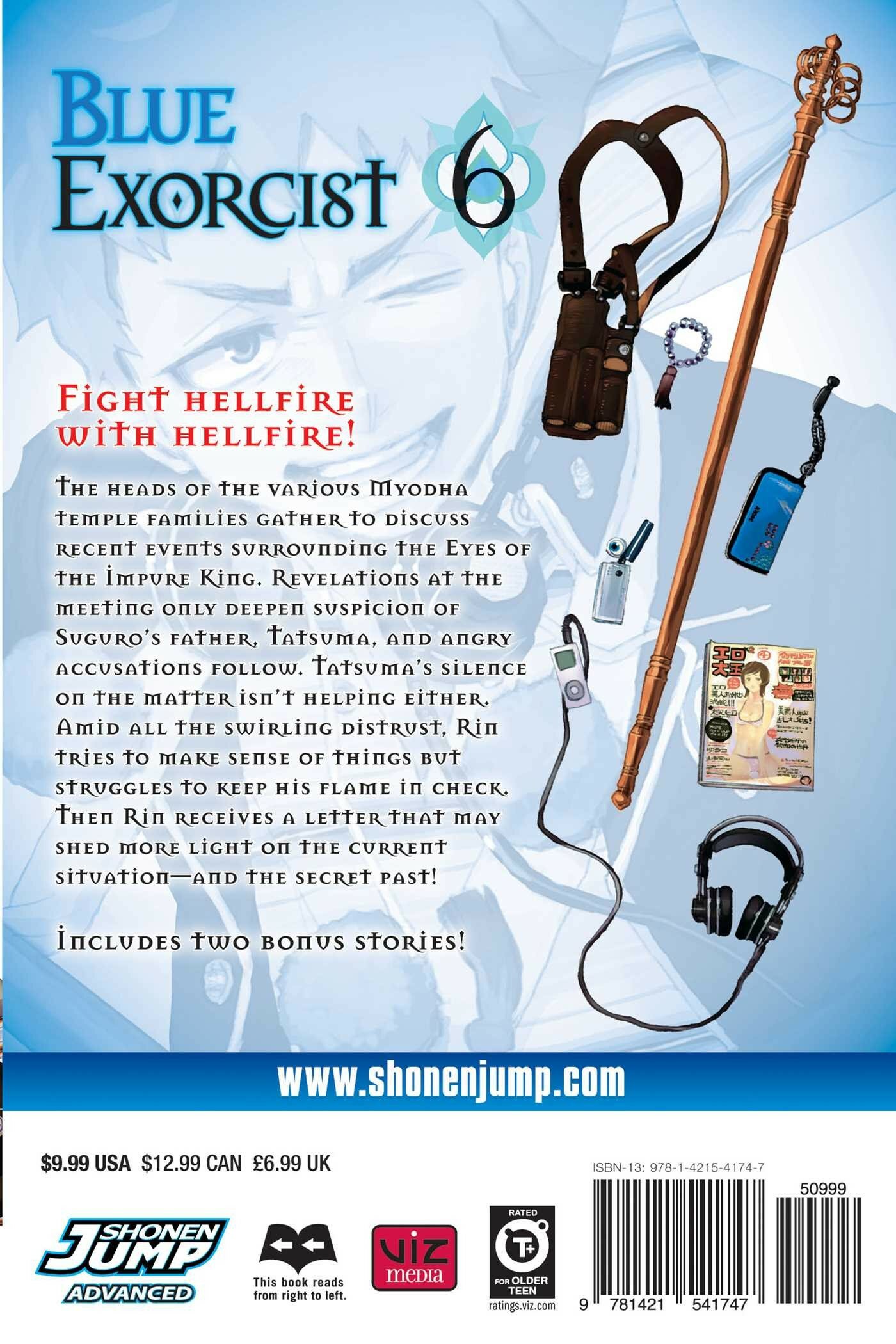 The heads of the various Myodha temple families gather to discuss recent events surrounding the Eyes of the Impure King. Revelations at the meeting only deepen suspicion of Suguro's father, Tatsuma, and angry accusations follow. Tatsuma's silence on the matter isn't helping either. Amid all the swirling distrust, Rin tries to make sense of things but struggles to keep his flame in check. Then Rin receives a letter that may shed more light on the current situation-and the secret past!