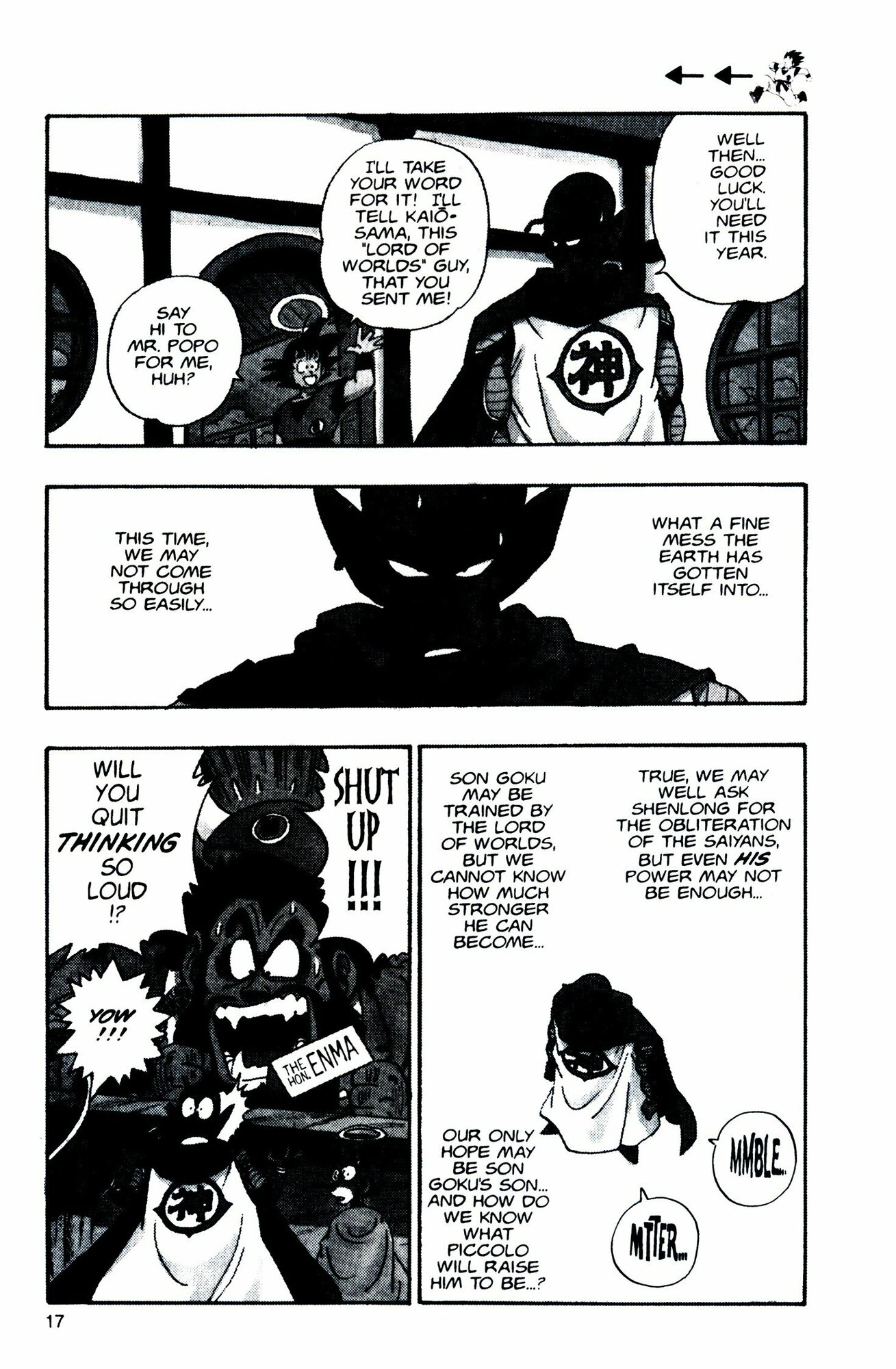 Goku is dead--but his journey is just beginning. Now he must travel through the afterlife along the million-kilometer Serpent Road to find Kaio-sama, the Lord of Worlds, who will teach him martial arts techniques so powerful they're reserved for the gods! And he'd better hurry, too, because Earth has only nine months until the evil Saiyans, Vegeta and Nappa, will arive to wipe the planet clean of life. While the archdemon Piccolo trains Goku's son Gohan to reach his full power potential, the alien spaceships rocket ever closer...bearing a power so awesome that even Earth's six strongest heroes may not be a match for it!!!