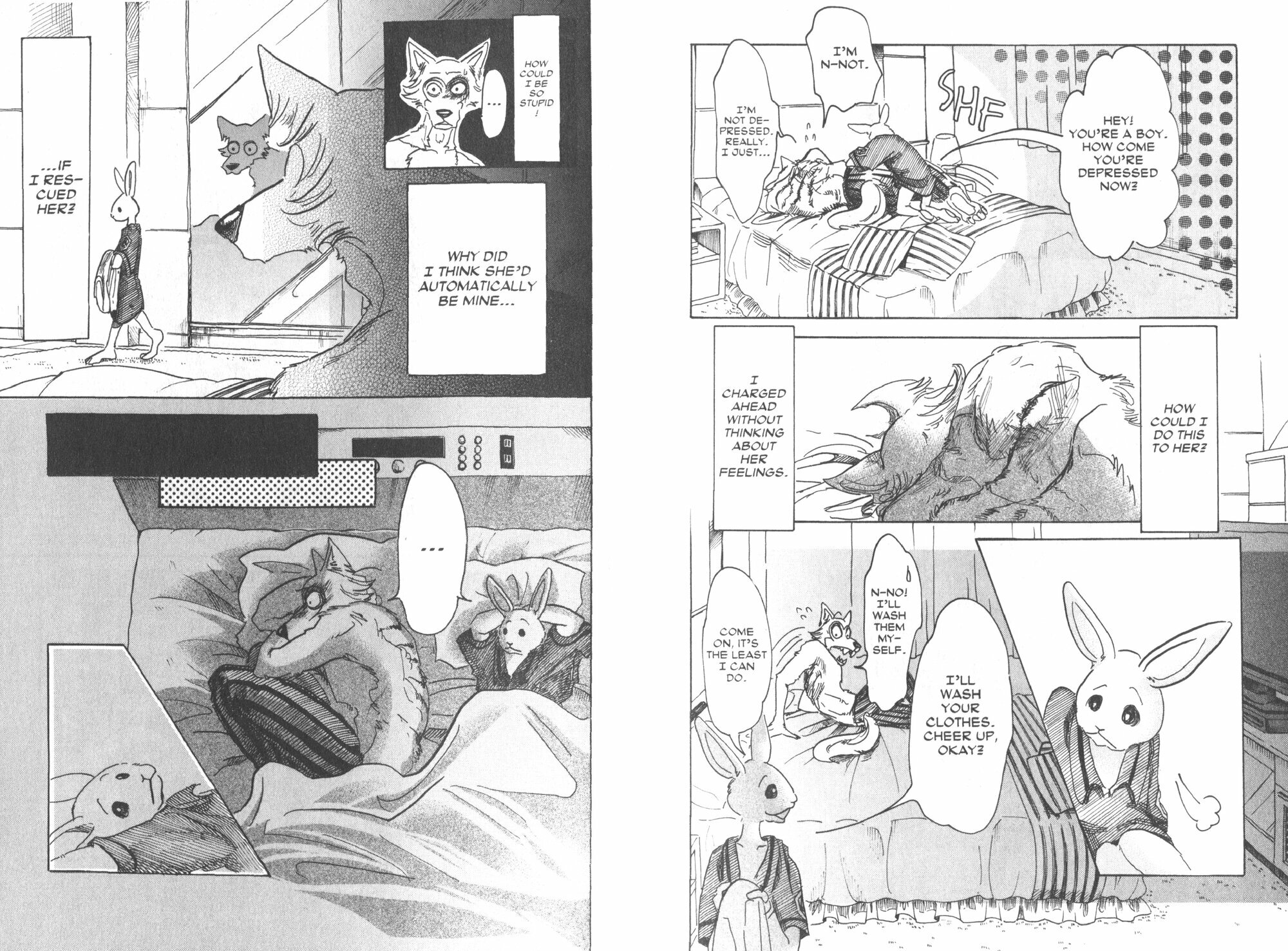 As gray wolf Legoshi and dwarf rabbit Haru’s relationship intensifies, gray wolf Juno’s jealousy grows. Red deer Louis’s mysterious absence from school has ramifications for both his friends and his enemies. And while the lion gang Shishi-gumi chooses a new leader, Cherryton Academy’s headmaster attends the Council of Living Beings to choose the school’s next Beastar. Plus, a flashback to Legoshi’s and Jack’s puppyhoods and the social engineering following the world war that led to the current fragile truce between carnivores and herbivores.