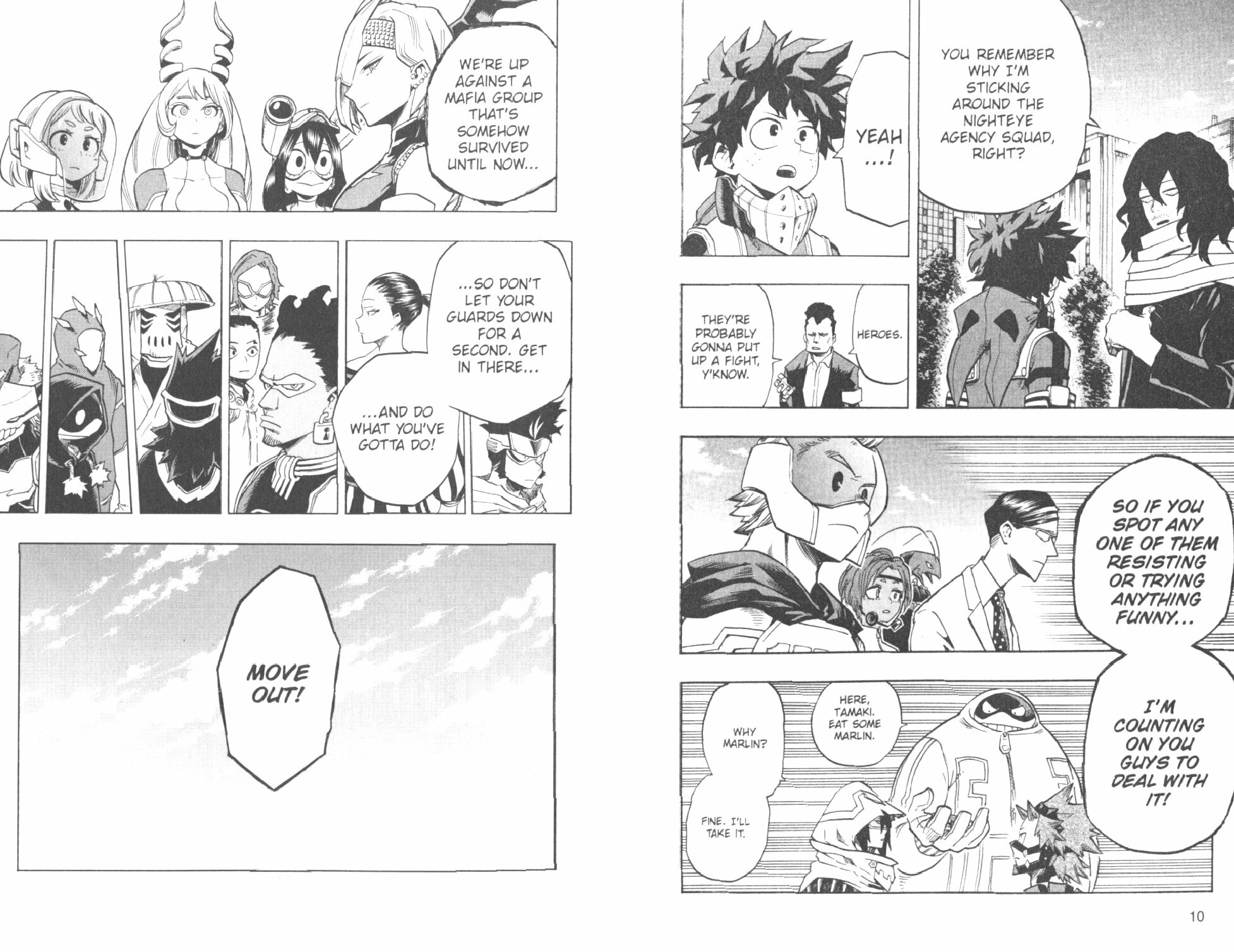 The Hassaikai crime gang, led by the young boss Chisaki, has been working on a plan to distribute a Quirk-destroying drug. The key to this evil scheme is the young girl Eri, held prisoner in Chisaki’s hideout. Nighteye asks other heroes to form a team to launch a rescue attempt—and the students of Class 1-A are going into the lion’s den with them! But Nighteye, who can see the future, refuses to look at the fates of anyone going on the mission…