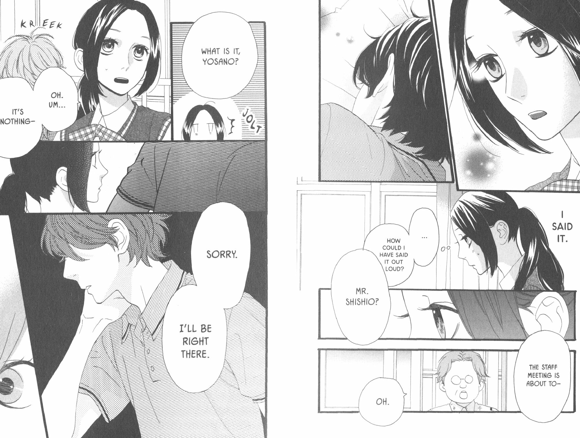 Suzume has moved to Tokyo and is living with her uncle. In an unguarded moment while Mr. Shishio naps in the infirmary, Suzume voices her feelings. But he wasn’t sleeping?! Mamura soon realizes how Suzume feels about their teacher, and with Mr. Shishio’s ex-girlfriend back in the picture, things become even more complicated.